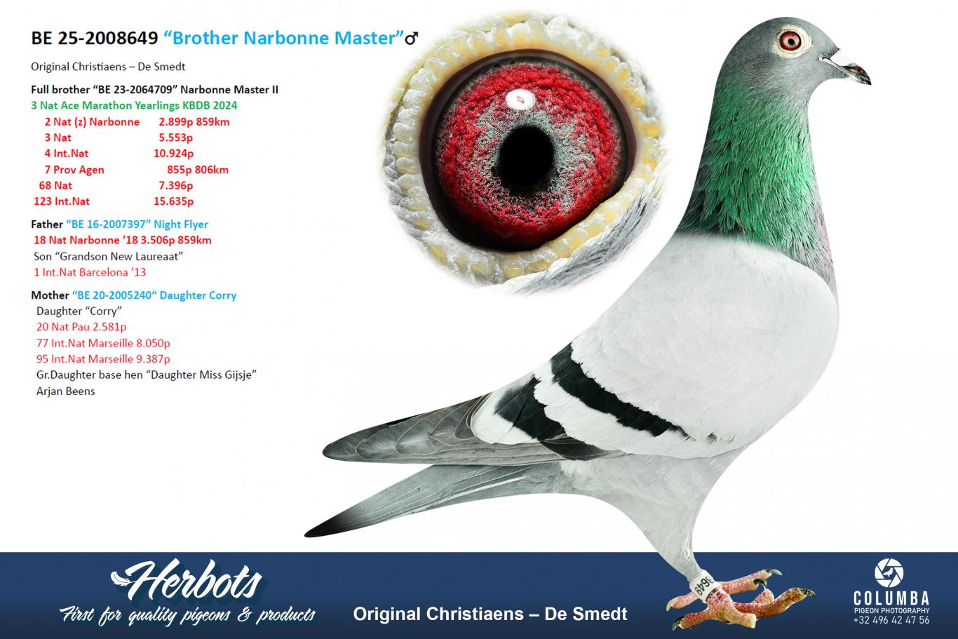 This is a full brother of “Narbonne Master 2”, 4th Int.Nat Narbonne and 3rd National Ace Pigeon Extreme Long Distance KBDB 2024.