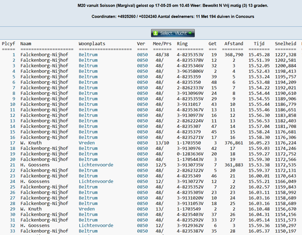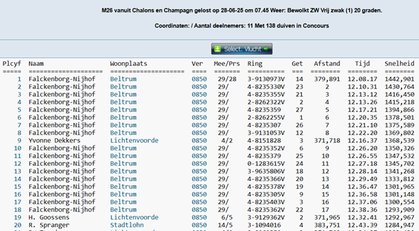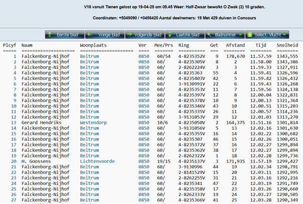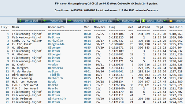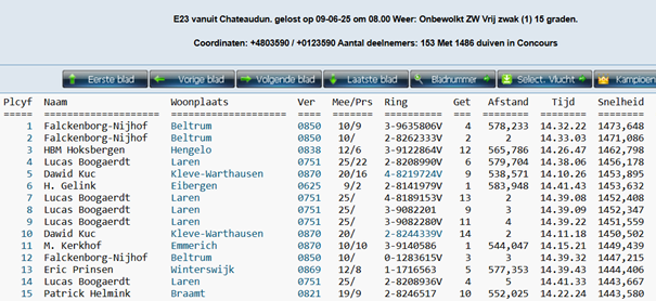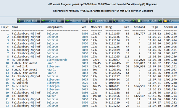 Falckenborg-Nijhof has been among the best fanciers in the Netherlands for several seasons. Including: