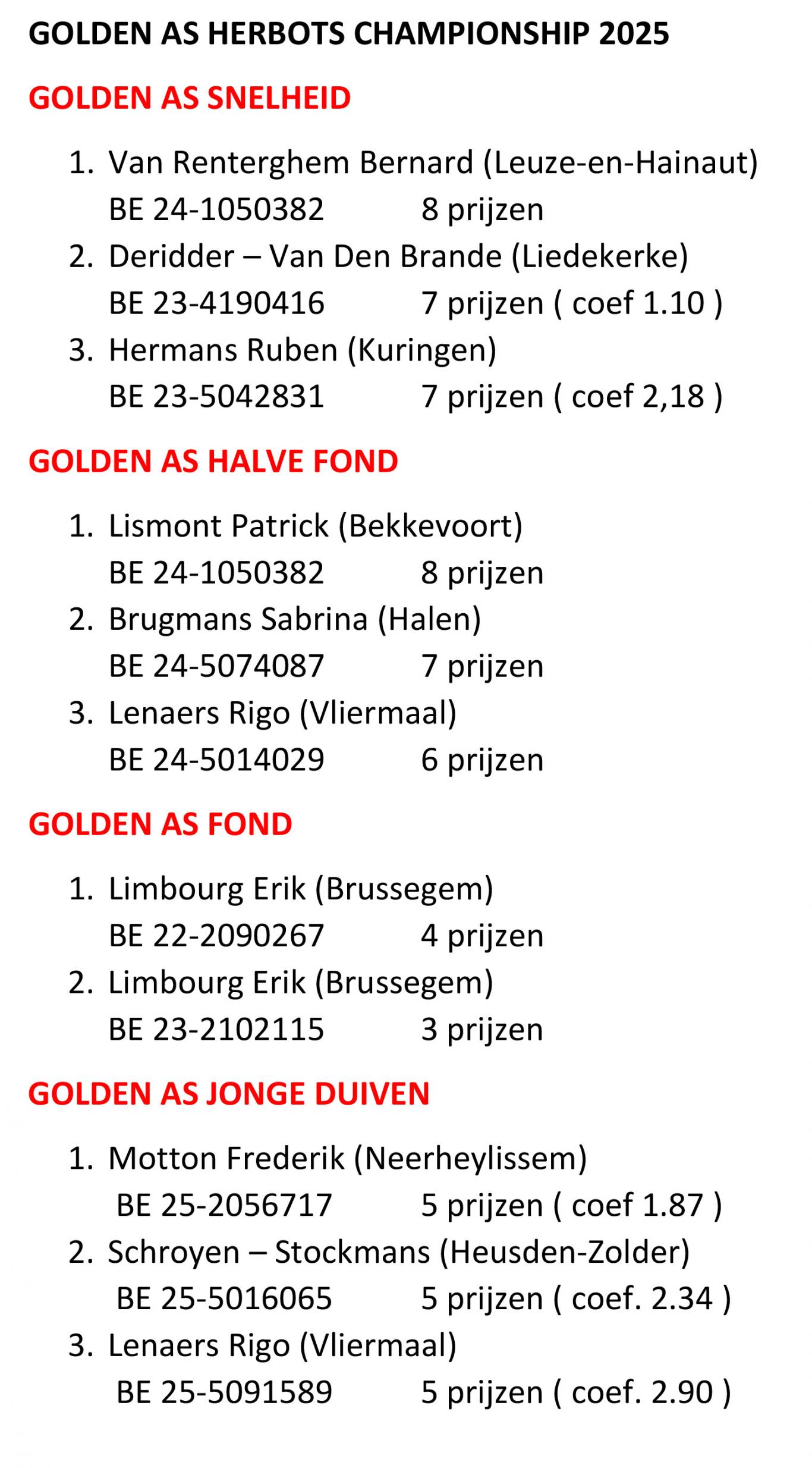 Afterwards, we will publish a final list in which the fanciers listed in bold will also receive a beautiful trophy at our Herbots Celebration, which will take place on January 31, 2026.