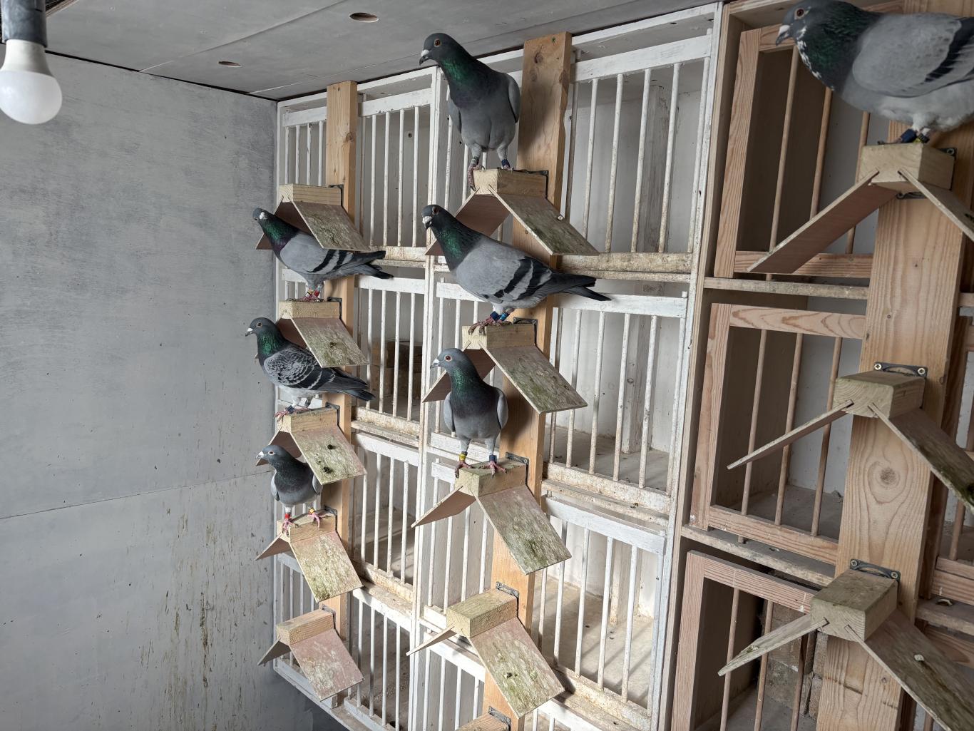 The widowers fly in "their territory." Before basketing, they can go to their nest box, and after returning from the race, they are reunited with their hens. His principle is simple but essential: he wants the pigeons to be happy to return.