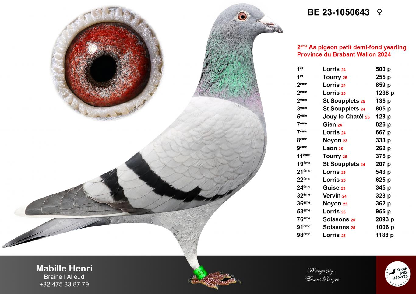 • 4th in the Short-Middle Distance (Old Pigeons) Hainaut-Walloon Brabant 2025
