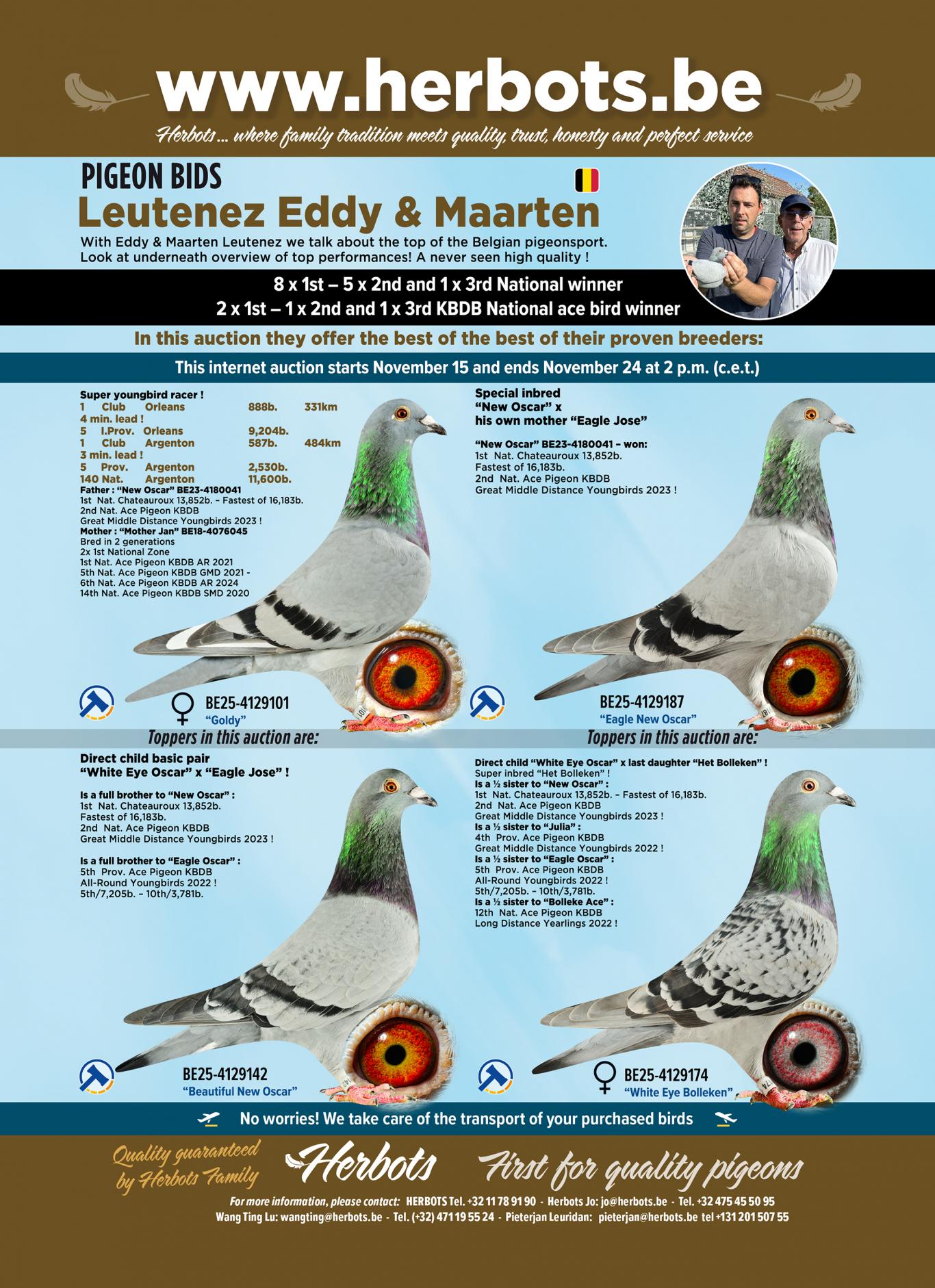 Eddy and Maarten bred and selected a wonderful group of their very best pigeons especially for the Pigeon Bids online sale.
