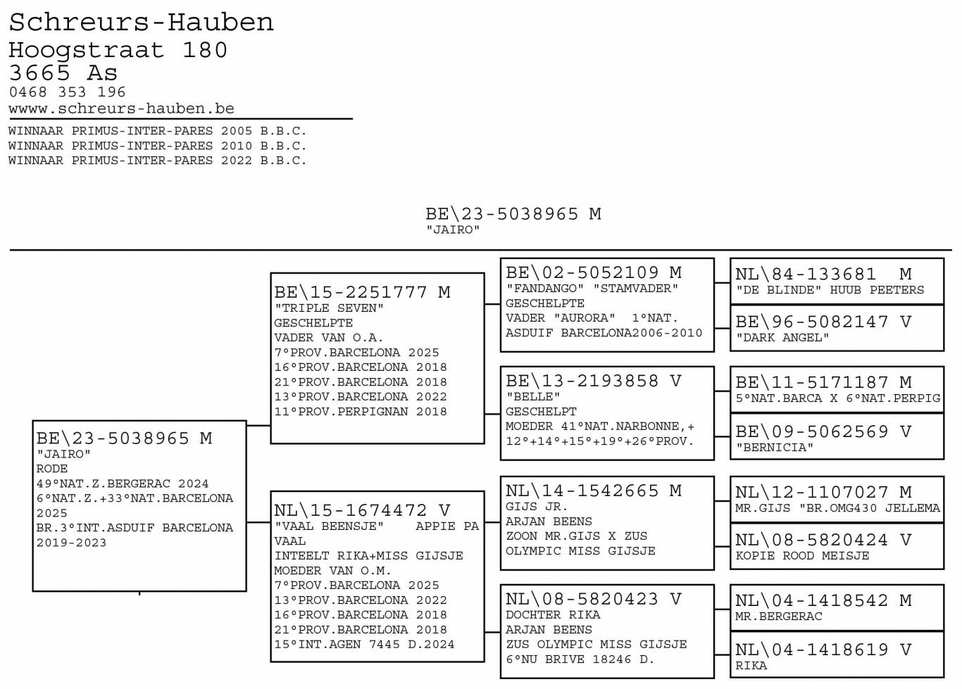 Daughter of "NL 689/16" De Jan J.W. Schreurs x "808/18" daughter of base breederFandango.