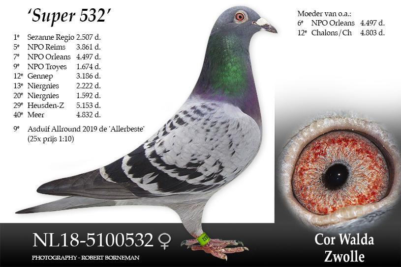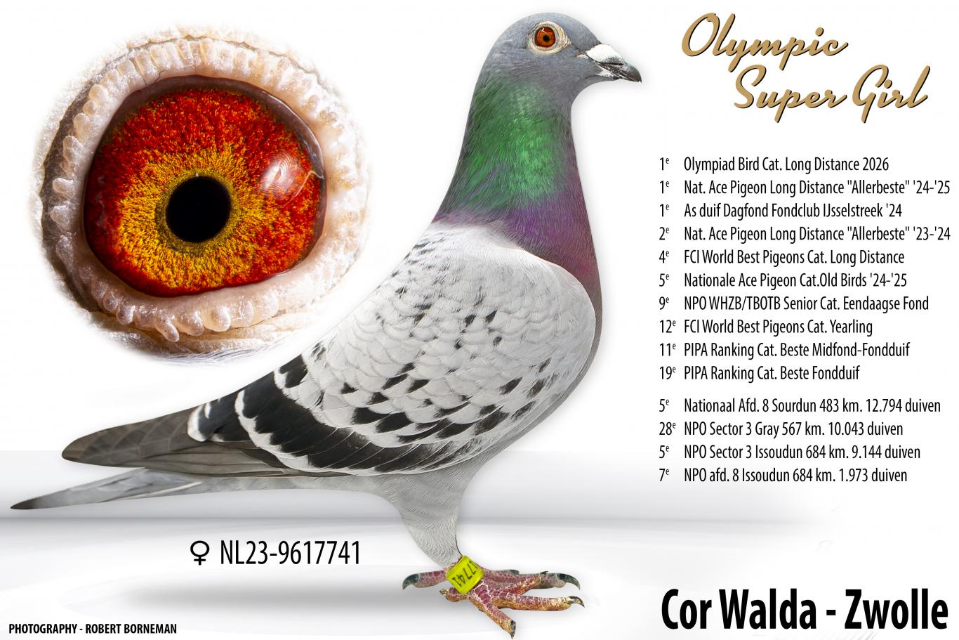 - “Olympic Super Girl” (23-9617741): 1st Dutch Olympic Pigeon Middle Distance category 2026 in Dortmund + 1st World Olympic Pigeon Middle Distance 2026 in Dortmund