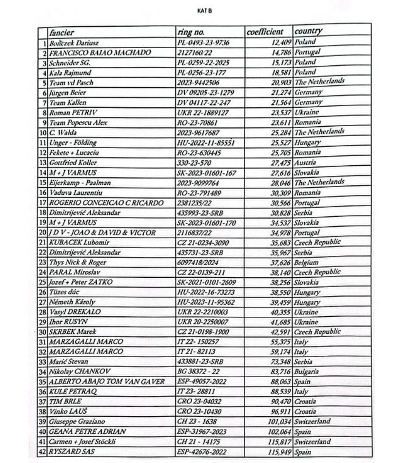 - 16th FCI WORLD BEST PIGEON “YEARLING” 2024– 8102216