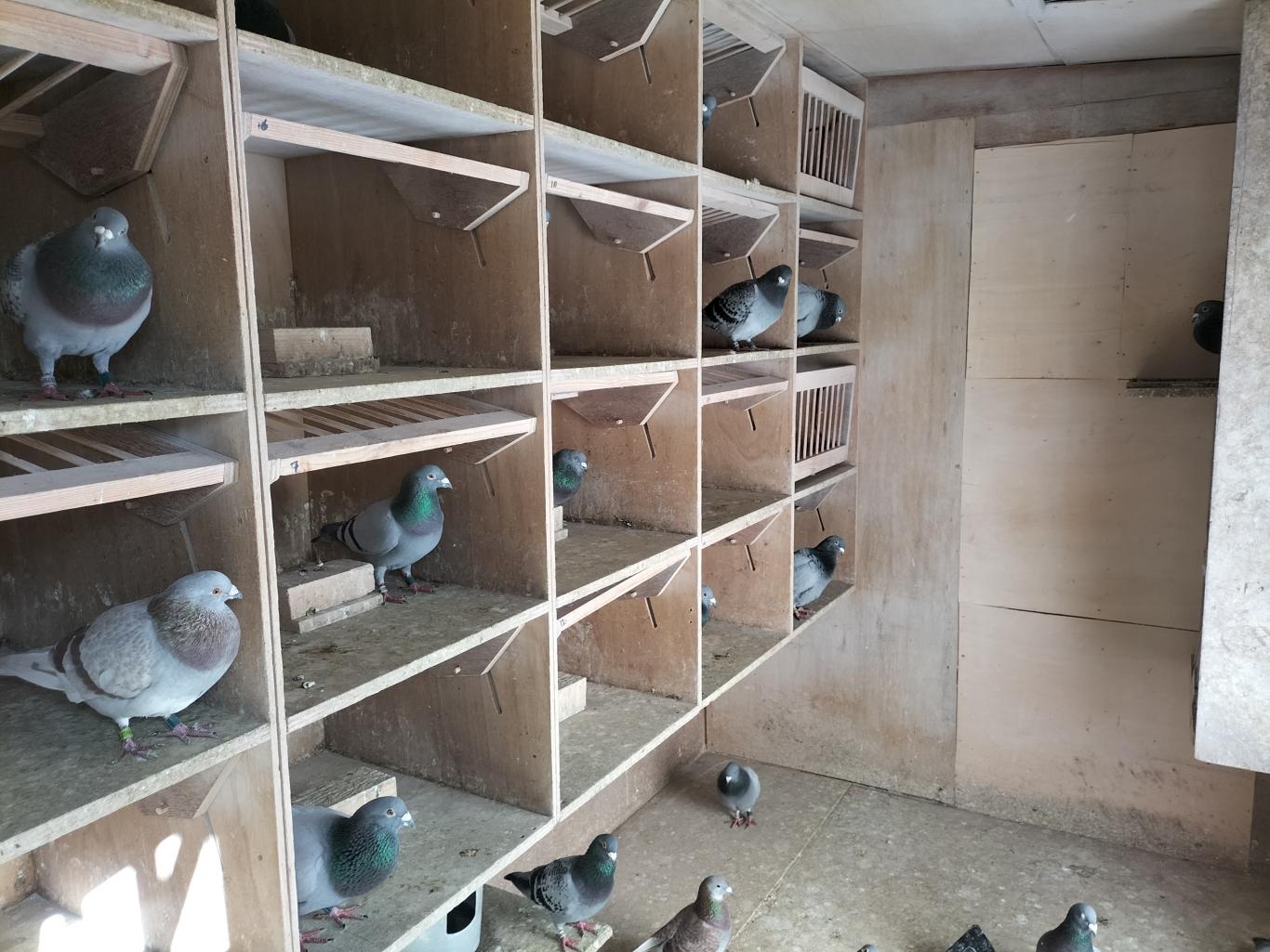 Cor has a racing squad of about twenty cocks and twenty hens, which he races under total widowhood. When there is a real top performer among them, the partner stays home after a few races to keep the focus entirely on performance. Toward the end of the season, he sometimes switches to nest racing.