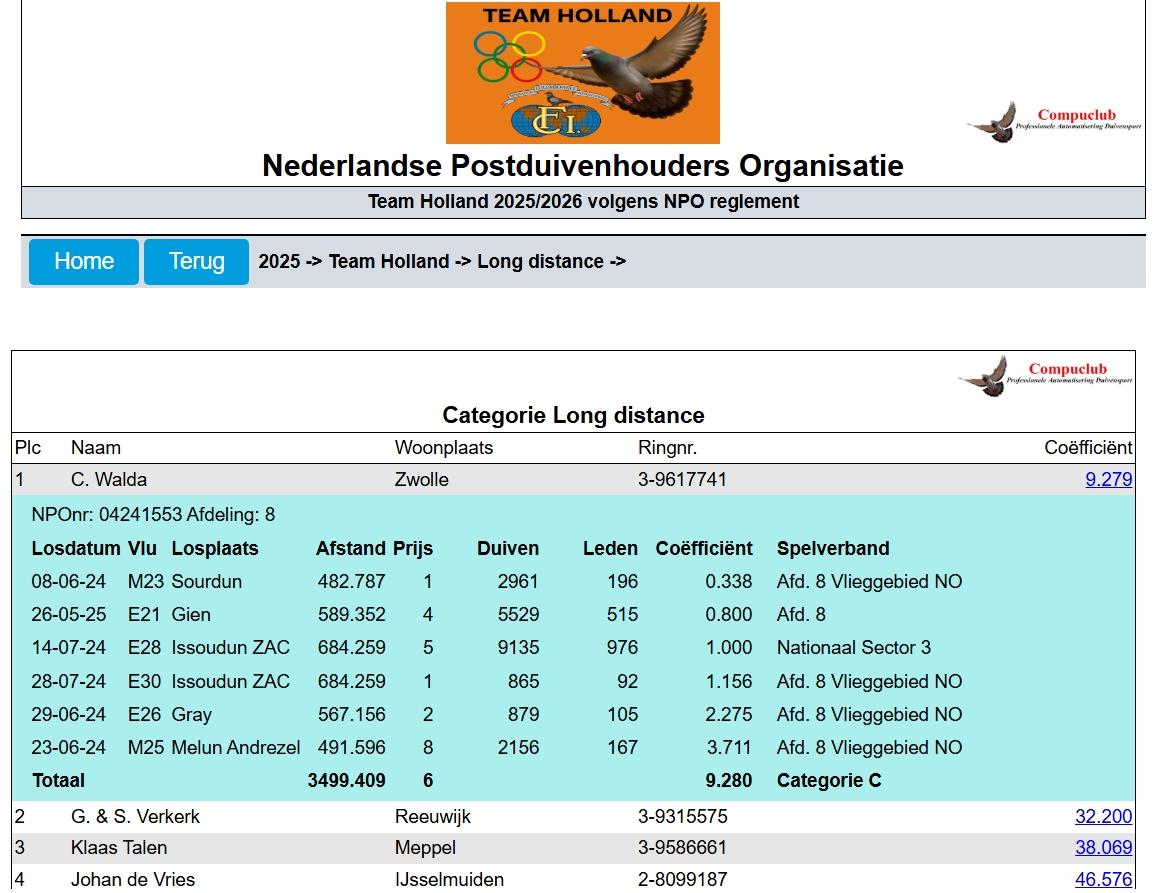 It was already known that Cor Walda had one of the strongest lofts in the Netherlands as early as 2024. But what he achieved in 2025 took his performance to an even higher level. Week after week, he managed to post impressive results and strong series. Under his roof are currently several absolute top-class birds that effortlessly compete with the national and international elite.