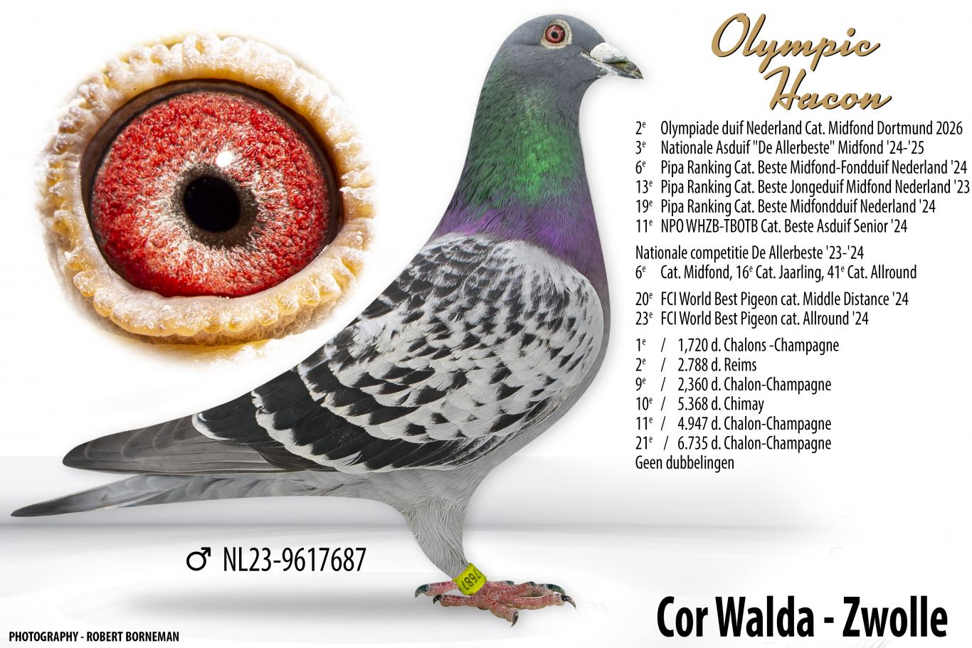 - “Olympic Hakon” (23-9617687): 2nd Dutch Olympic Pigeon, Middle Distance category, 2026 in Dortmund