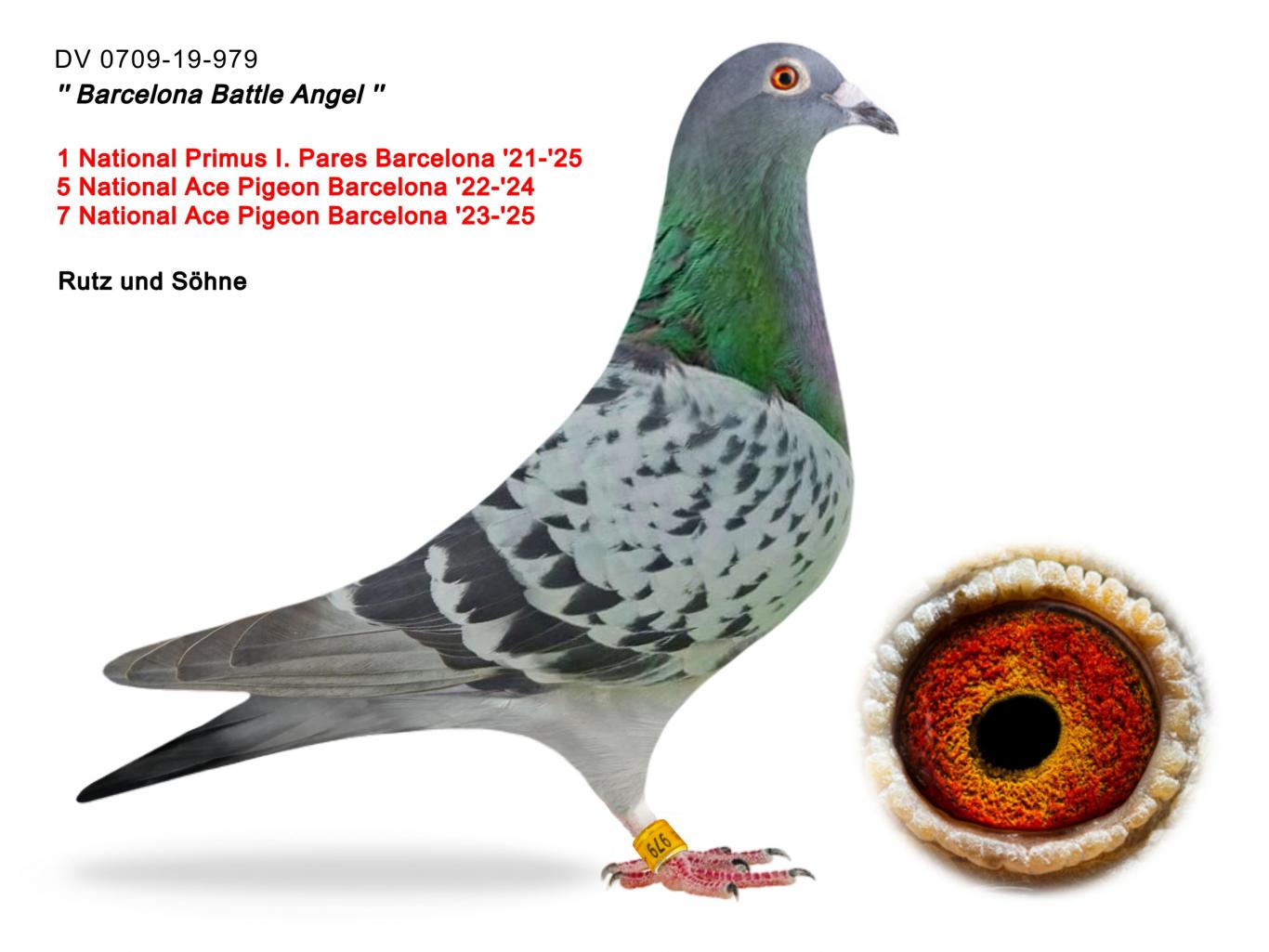 Today, the RUTZ & Sons loft includes six pigeons with five prizes from five Barcelona entries, two national top female As pigeons, one national top male As pigeon, one Olympic male, three national top female As pigeons in three Barcelonas, and two national top male As pigeons in three Barcelonas. All descend from the STICHELBAUT x MORSNOWSKI x LIJNDERS base, cultivated and consolidated consistently for over thirty years. To preserve genetic vitality and avoid inbreeding, the RUTZ family also follows a carefully planned policy for introducing new top pigeons. In this context, the 2nd National Narbonne by Klaus PAULUS (origin Leo KOUTERS), the “Rhône Man” by Jos THONE (2nd National Belgian As pigeon on the Rhône route), and most recently the 1st National Brive (750 km) by the PLUM family have been integrated. Other crosses proved equally successful, such as the introduction of a son of the 1st National Barcelona by Vincent THELLIER. Current experiments involve pigeons from VAN DER WEGEN, Jelle JELLEMA, and Cor DE HEIJDE, acquired from their Romanian friends HUZU father and son.