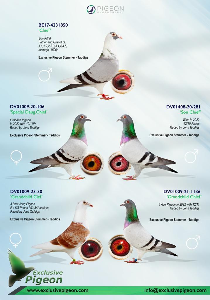 Thanks to sound advice from living legend Leo Heremans, they decided to invest specifically in pigeons from, among others, Dirk Van den Bulck, through Flanders Collection. Thanks to the excellent mediation of Franz Josef Irmer, they were able to acquire "Chief," a direct son of the legendary "Kittel." Through Frans Josef, a son of "Greipel," "Perfect," also ended up in the breeding loft of "Exclusive Pigeon."
