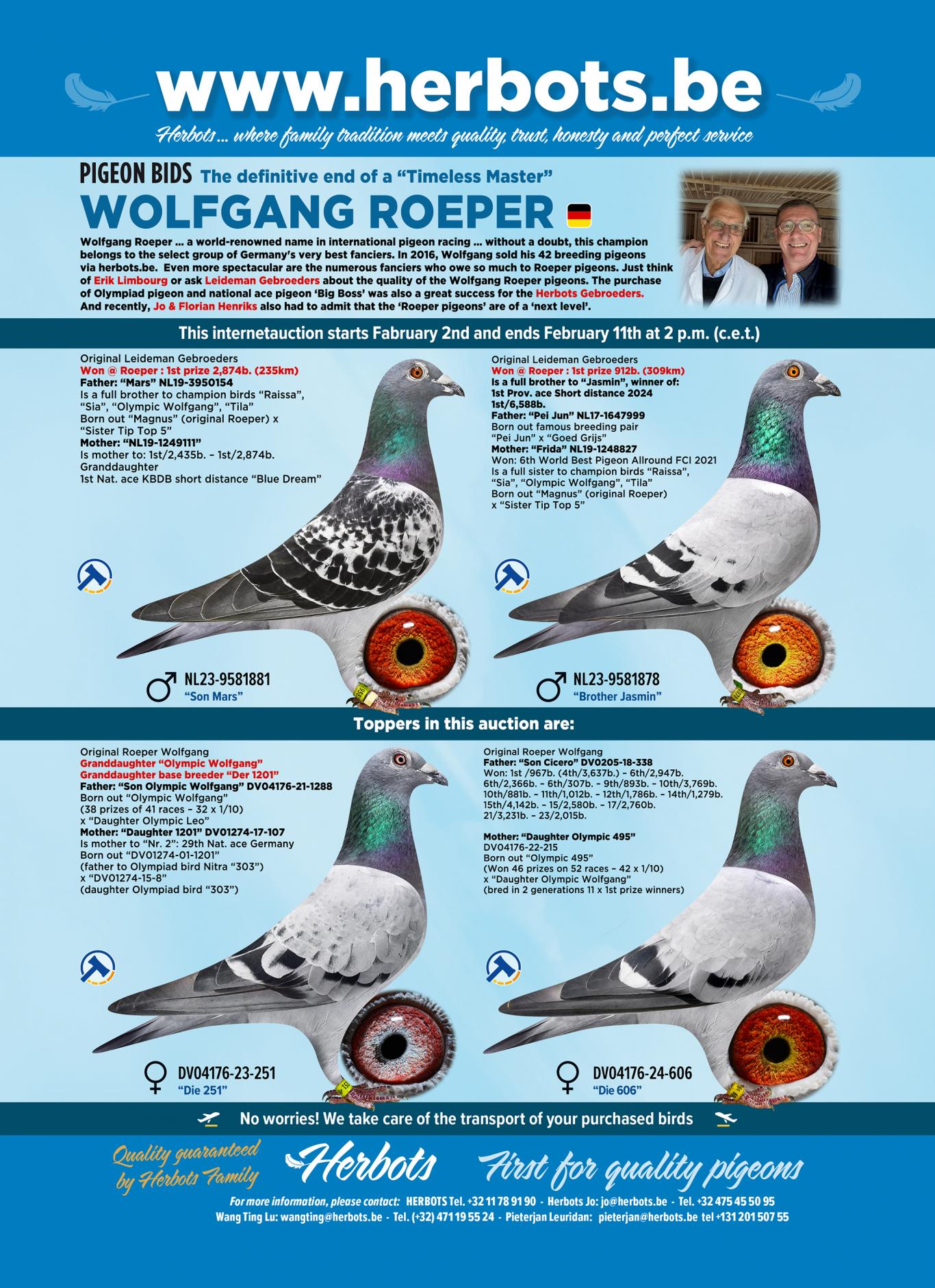 In a few days, we will also inform you about the power of the Roeper pigeons at the home of Erik Limbourg, Hendriks Florian and the Herbots Brothers.