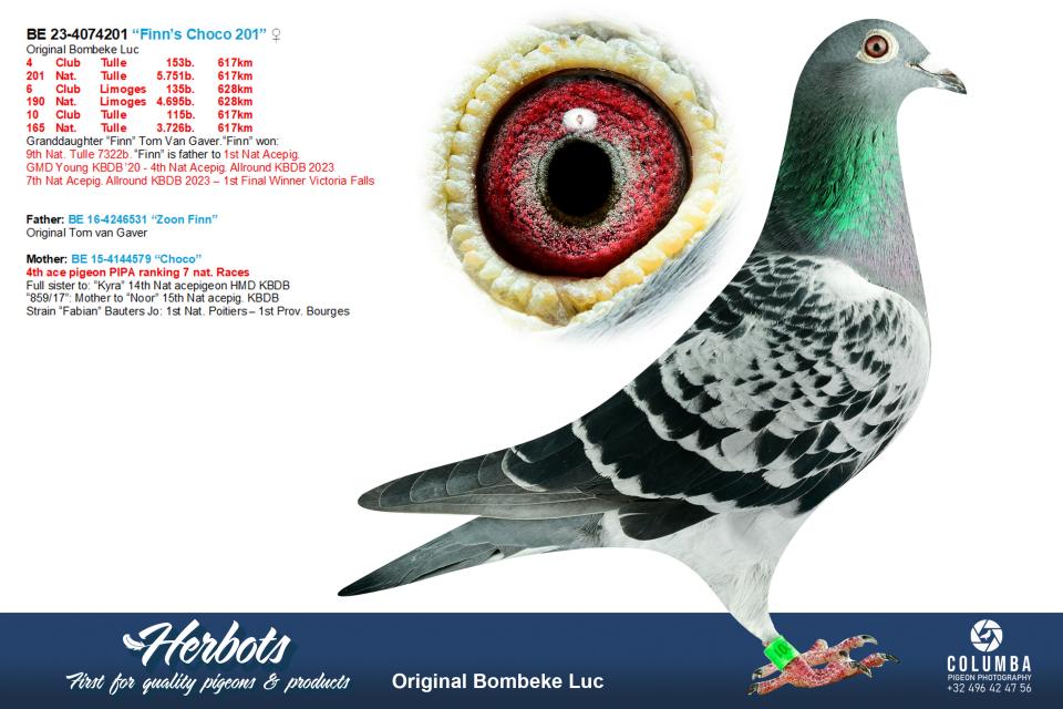 “Finn” is father to 1st Nat Acepigeon GMD Young KBDB ’20 – 4th Nat Acepigeon Allround KBDB 2023 – 7th Nat Acepigeon Allround KBDB 2023 – 1st Final Winner Victoria Falls