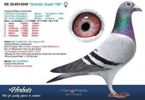 Strain “Number One” Gebr. Herbots: 1st Nat. Acepigeon M.D. KBDB 1999