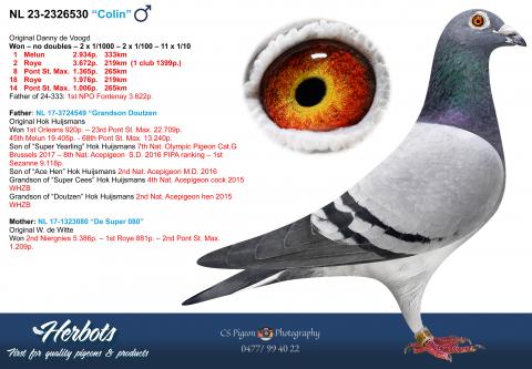 1st Olympic Pigeon Speed Boedapest 2014 – 1st Nat Acepigeon Speed/Middle Distance TBOTB 2013 – 1st Nat. Acepigeon Yearlings TBOTB 2013