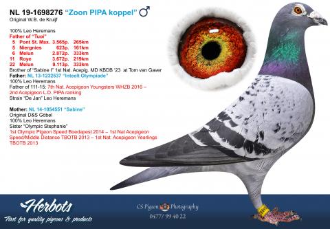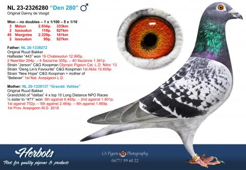 Son of “Zoon Bram” father of: 11th Nat. Acepigeon Youngster
