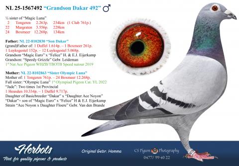 Full sister: “Olympic Luna” 1st Olympiad Pigeon Cat. YL 2022