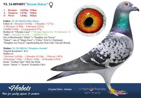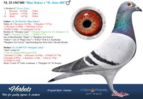 “Blue Dakar”, sire of, among others, the 1st Boxmeer against 14,010 pigeons and several other first prize winners.