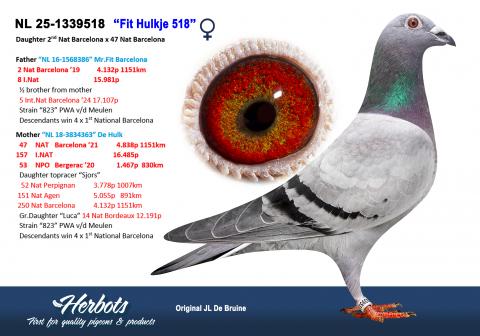 In this internet actions several special birds from the heart of the 2 colonies of Jacky & Leen De Bruine and PWA Van Der Meulen. Since 2018, 3 x 1st National, 1 x 2nd National Barcelona and 1 x 1st National Bergerac have been won thanks to the super breeder “823” from PWA Van der Meulen.