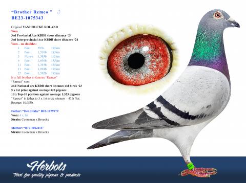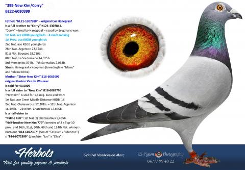 In this auction we have the offer of original birds of Verkerk G. & S. - Koopman Gerard - Peiren Noël - Van de Velde Marc - Vanhoucke Aland (proven racer and brother 2nd nat ace KBDB) and Team Patagoon Zuid (100% De Bruijn)
