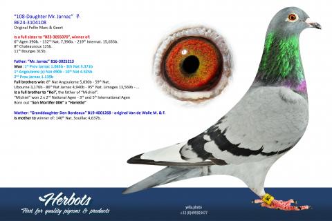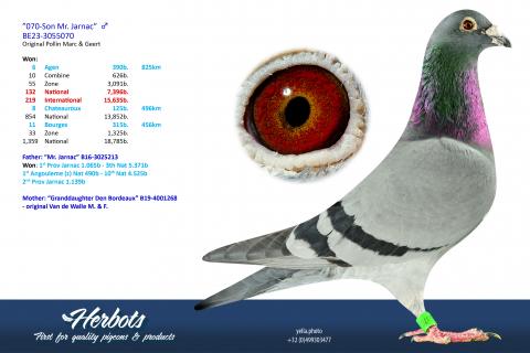 Thanks to their breeding performance, Marc and Geert could – generations later – take pride in the achievements of pigeons like New Belgian Pride, Joe, Brother Joe, Cadel, Bruce, Montauban II, Limo 301, Brutus, Mister Jarnac, Michiel, and many others.