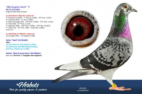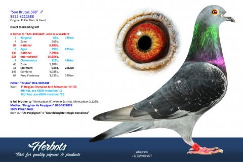 Thanks to their breeding performance, Marc and Geert could – generations later – take pride in the achievements of pigeons like New Belgian Pride, Joe, Brother Joe, Cadel, Bruce, Montauban II, Limo 301, Brutus, Mister Jarnac, Michiel, and many others.