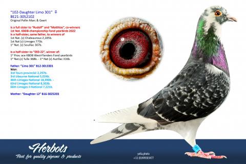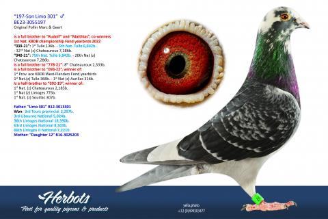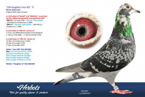 Thanks to their breeding performance, Marc and Geert could – generations later – take pride in the achievements of pigeons like New Belgian Pride, Joe, Brother Joe, Cadel, Bruce, Montauban II, Limo 301, Brutus, Mister Jarnac, Michiel, and many others.