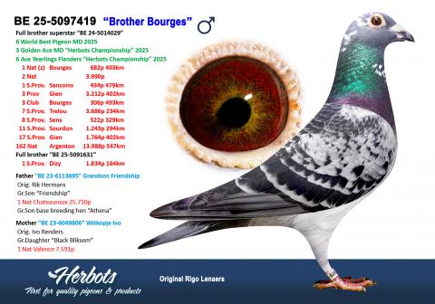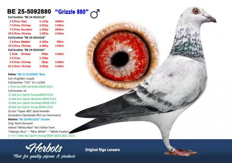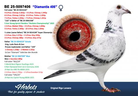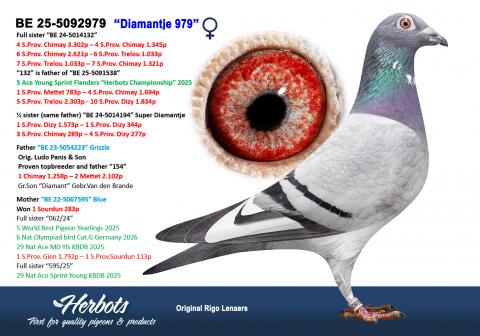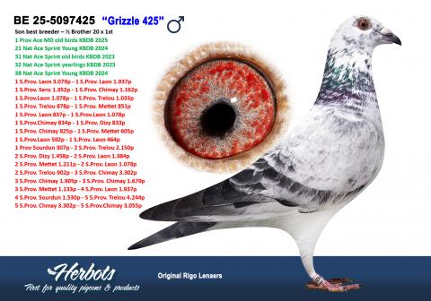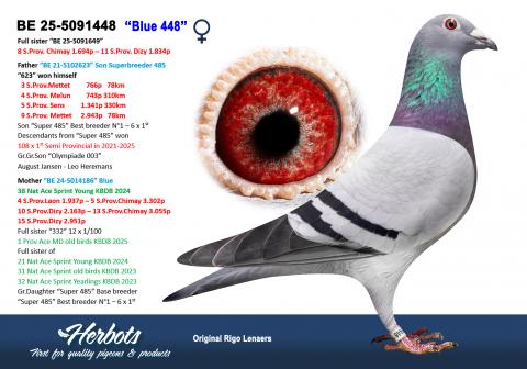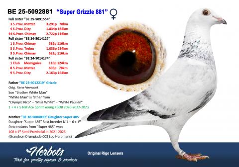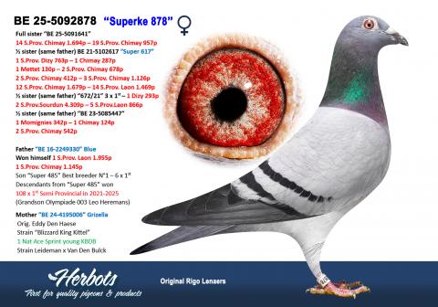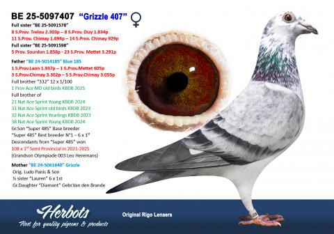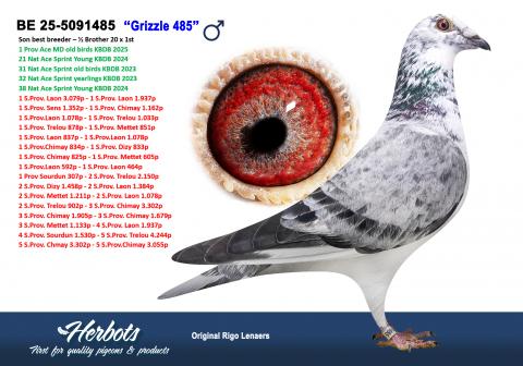 All thanks to "Super 485", his descendants who are doing fantastic. “Super 485” is a grandson of Olympiade 003” of August Jansen – Leo Heremans. His children and grandchildren are real winners and here you have pure gold in your hands.
