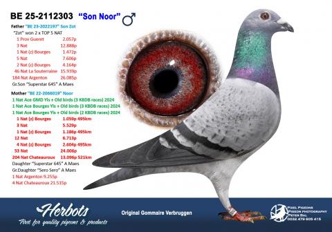 For the first time and exclusively at www.herbots.be, the super colony of Gommaire Verbruggen will be offering several special summer youngsters for sale via an online auction. The colony has been at the top of the pigeon sport for many years and has been particularly successful in recent decades thanks to super breeder "Superstar 645." This is a fantastic breeding line that Gommaire discovered and crossed with his old base.