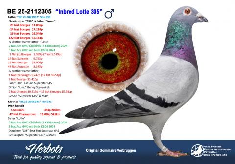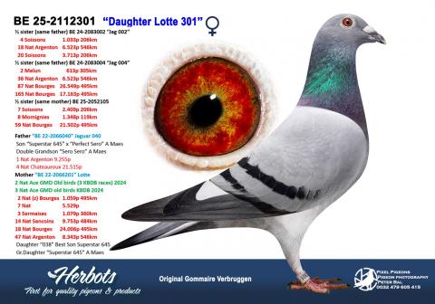 2 Nat Ace Pigeon Heayv middle distance old + yearlings (3 KBDB races) 2024 with “Lotte”