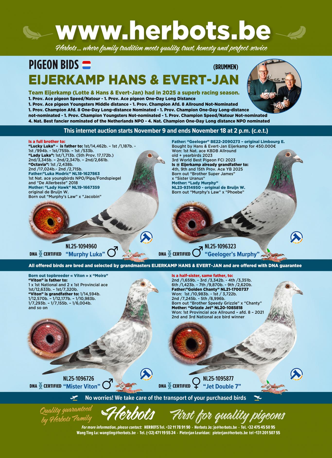 Hans et Evert-Jan Eijerkamp continuent de dominer la colombophilie néerlandaise.