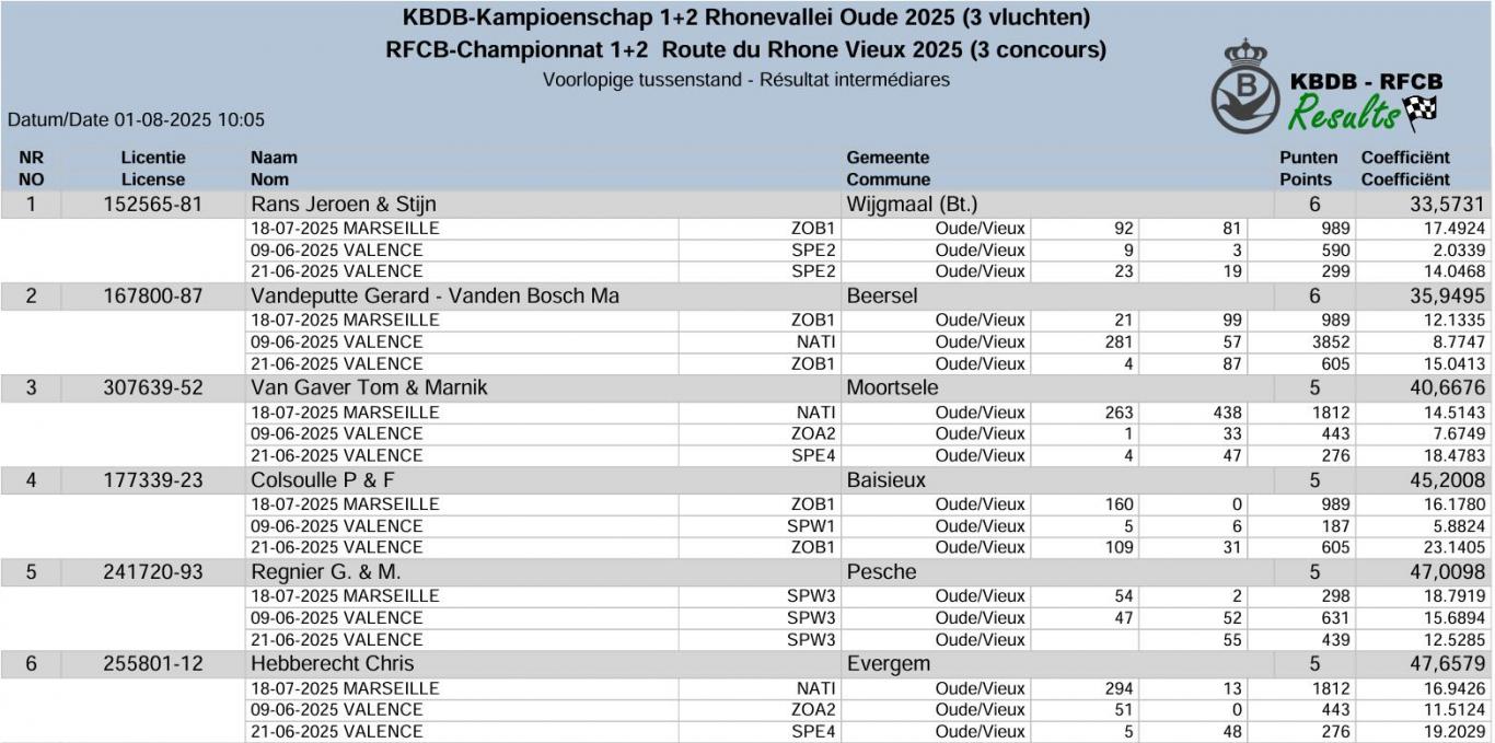 Laurent n’est pas l’homme des pédigrées et des longs discours, mais bien un homme de terrain dont les journées sont bien remplies puisque le nettoyage des casiers et du plancher des pigeonniers se fait encore à la main. Il est pointilleux, perfectionniste, bien organisé et la sélection des pigeons est réalisée sur base des résultats réalisés (maximum de prix par 10, avec 50% de prix au minimum). Et en cette année 2025, Laurent Colsoulle s’est encore distingué en se classant 4ème RFCB au championnat 1+2 Route du Rhône Vieux et 7ème As-Pig. Vieux RFCB Route du Rhône sur 2 concours.