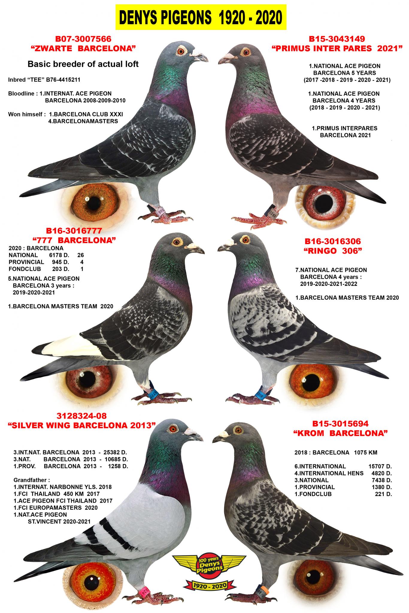 Elle est issue de « Black Boy » x « Fille Witkop », les grands-parents des 1er et 12e pigeons de la course Taichung 3 693. (2014) – 1er FCI Catalogne Espagne 2003 – 1er Princess Cup Thaïlande (580 km) 2006