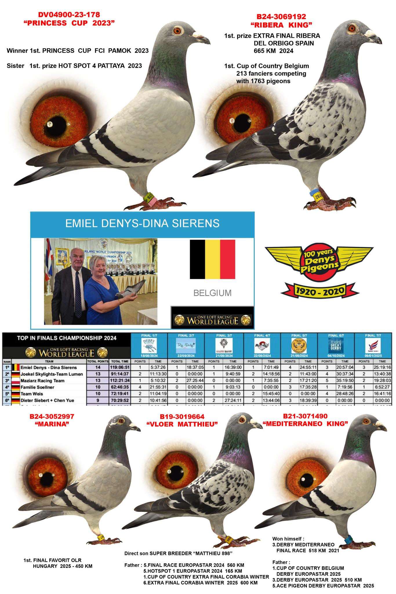 Le nom d'Emiel Denys n'est plus à présenter dans le monde colombophile international. Malgré son âge avancé, Emiel ne ménage aucun effort pour participer au plus grand nombre possible de finales de One Loft Race. Son réseau international est donc incomparable.