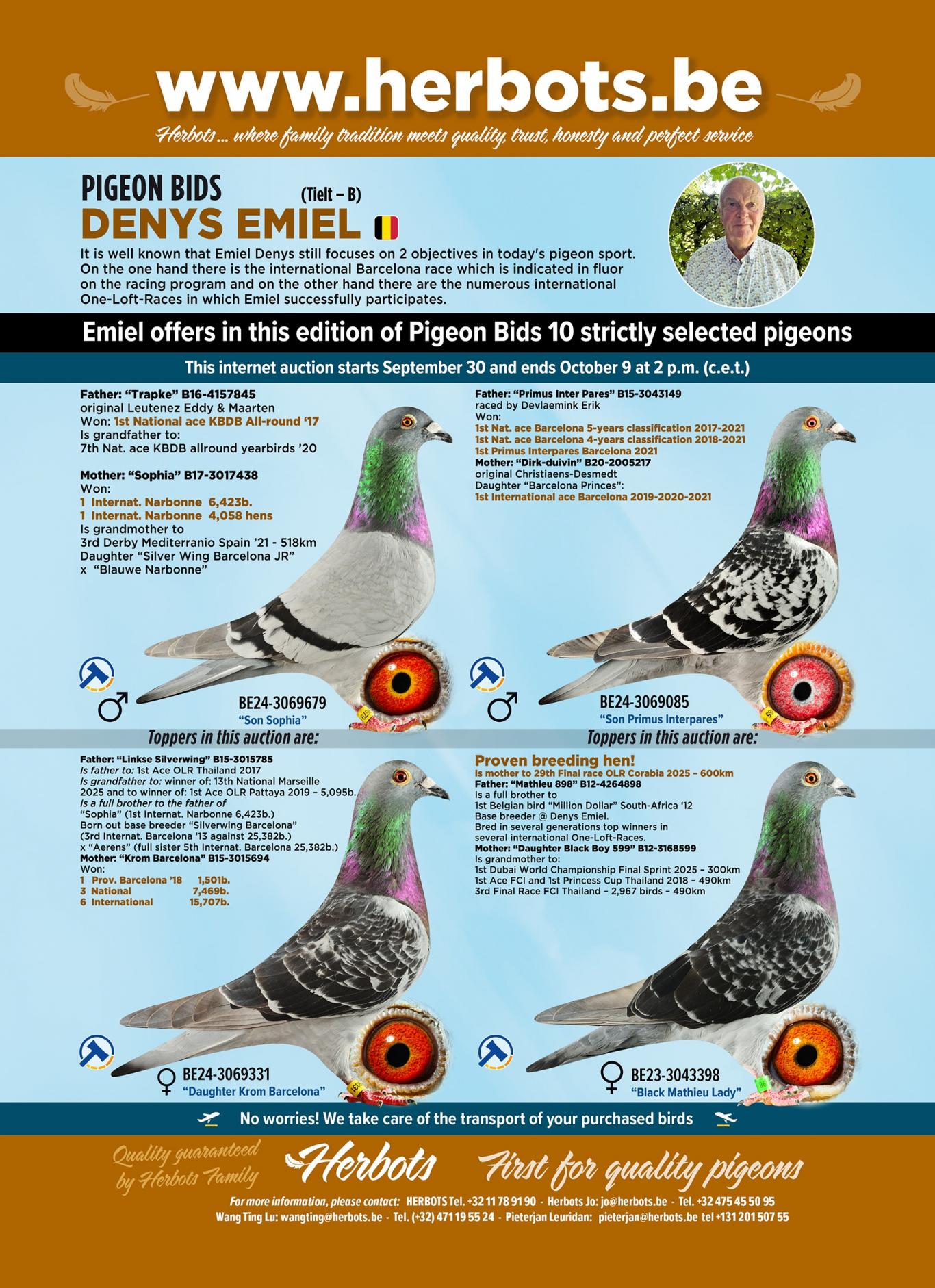 L'éleveur de pigeons Allround Emiel Denys propose une sélection rigoureuse de pigeons, tous issus de ses meilleures lignées, pour sa vente en ligne « Pigeon Bids ».