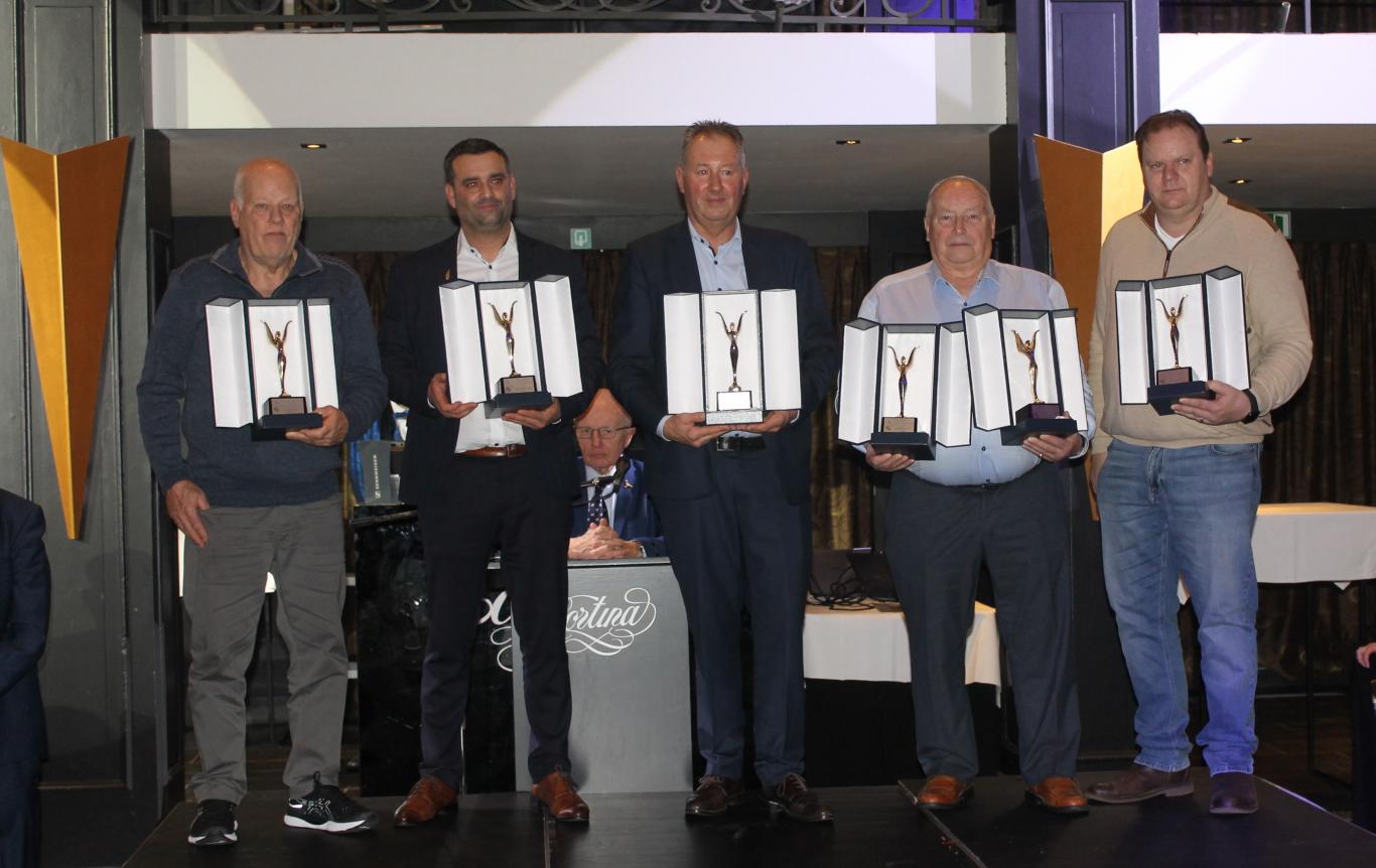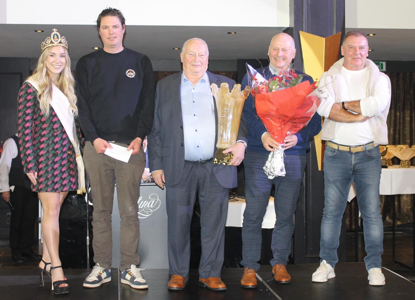 Algemeen Kampioenschap Youri Deblanc, Dirk Deroose, Eric Limbourg met voorzitter Norman en KBDB voorzitter De Schouwer