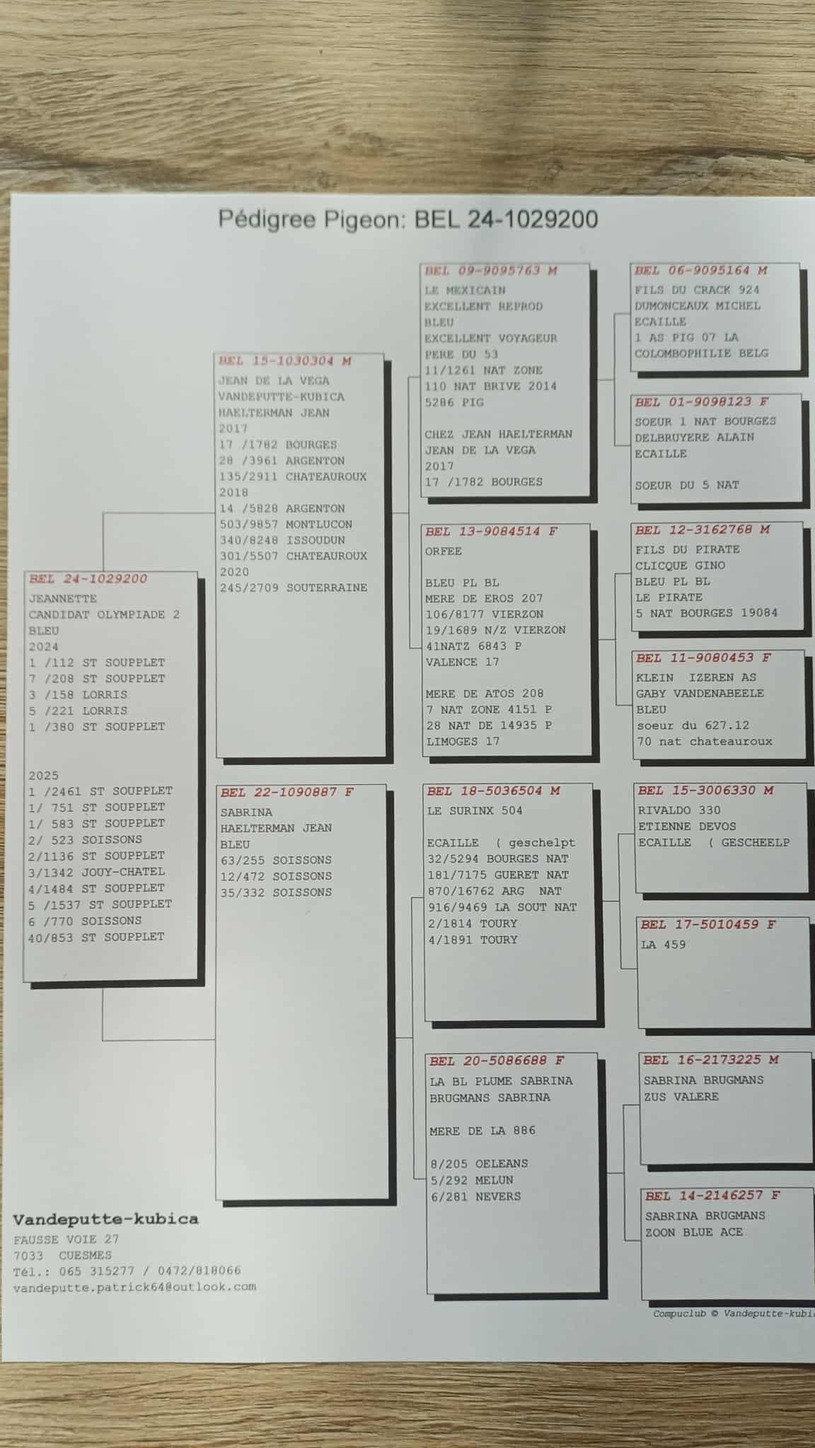 Cette femelle provient en grande majorité de chez Jean Haelterman. Elle est d’origine Surinx, Clicque, Brugmans, Vandenabeele...