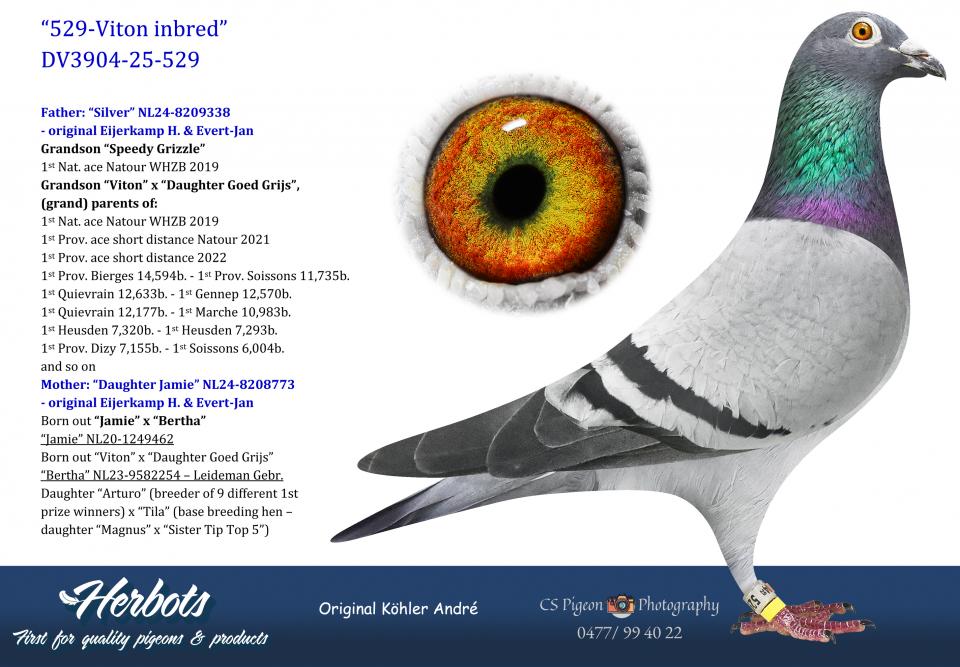 Daughter “Arturo” (breeder of 9 different 1st  prize winners) x “Tila” (base breeding hen – daughter “Magnus” x “Sister Tip Top 5”)