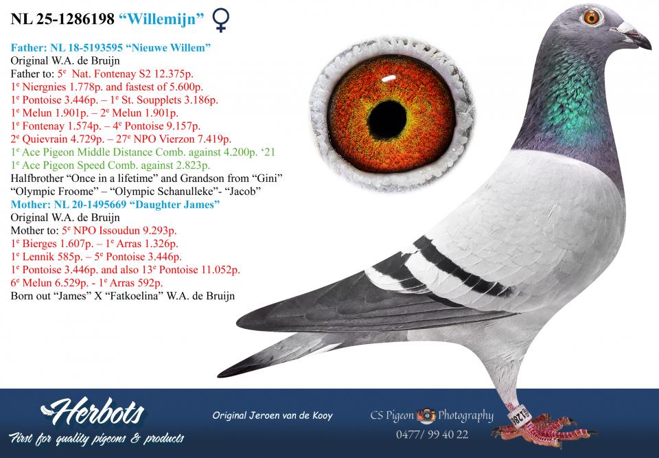 “Jacob” 4e Nat. Ace Pigeon cocks WHZB 2015 - 2e Nat. Ace Pigeon Allround TBOTB - 9e Nat. Ace Pigeon L.D. NPO 2013 en 3e Ace Pigeon Allround Europacup 2014