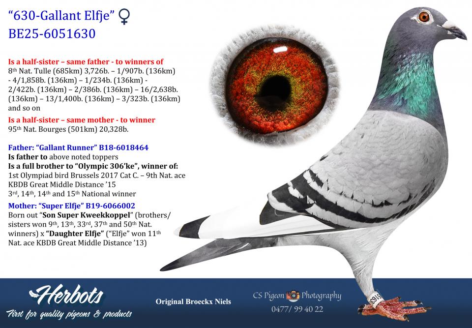 Born out “Son Super Kweekkoppel” (brothers/sisters won 9th, 13th, 33rd, 37th and 50th Nat. winners) x “Daughter Elfje” (“Elfje” won 11th Nat. ace KBDB Great Middle Distance ’13)