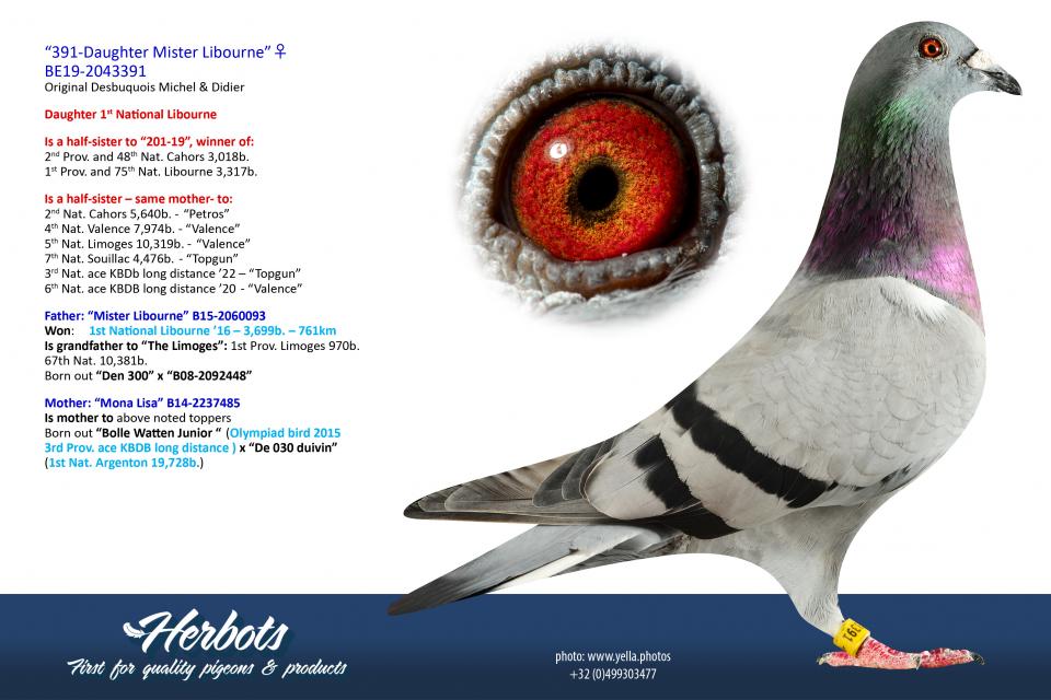 x 2nd World Best pigeon “Chenoa” (NL03-1144853)