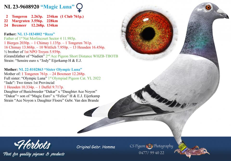 Full sister: “Olympic Luna” 1st Olympiad Pigeon Cat. YL 2022