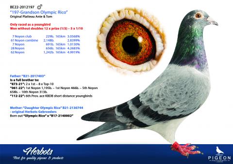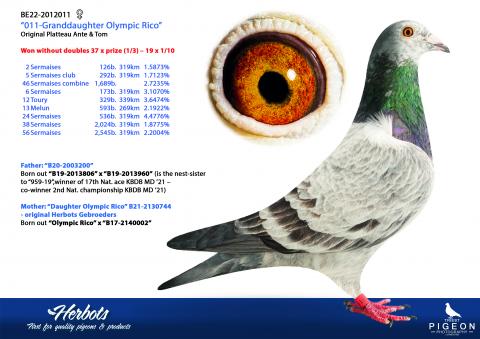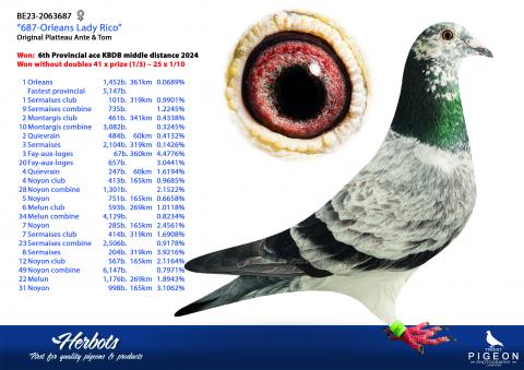 La deuxième partie propose également des pigeons voyageurs confirmés, tous liés au crack national de la KBDB et phénomène de reproduction “Rico”.
