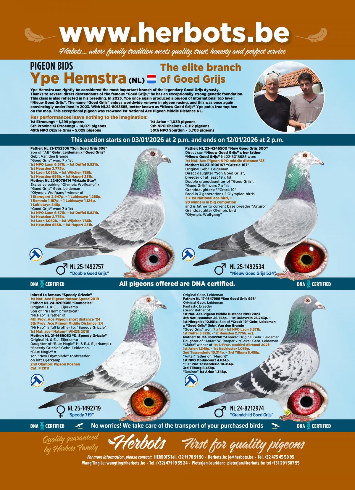 Especially for Pigeon Bids, Ype has selected a top group of pigeons related to his current champion breeders.