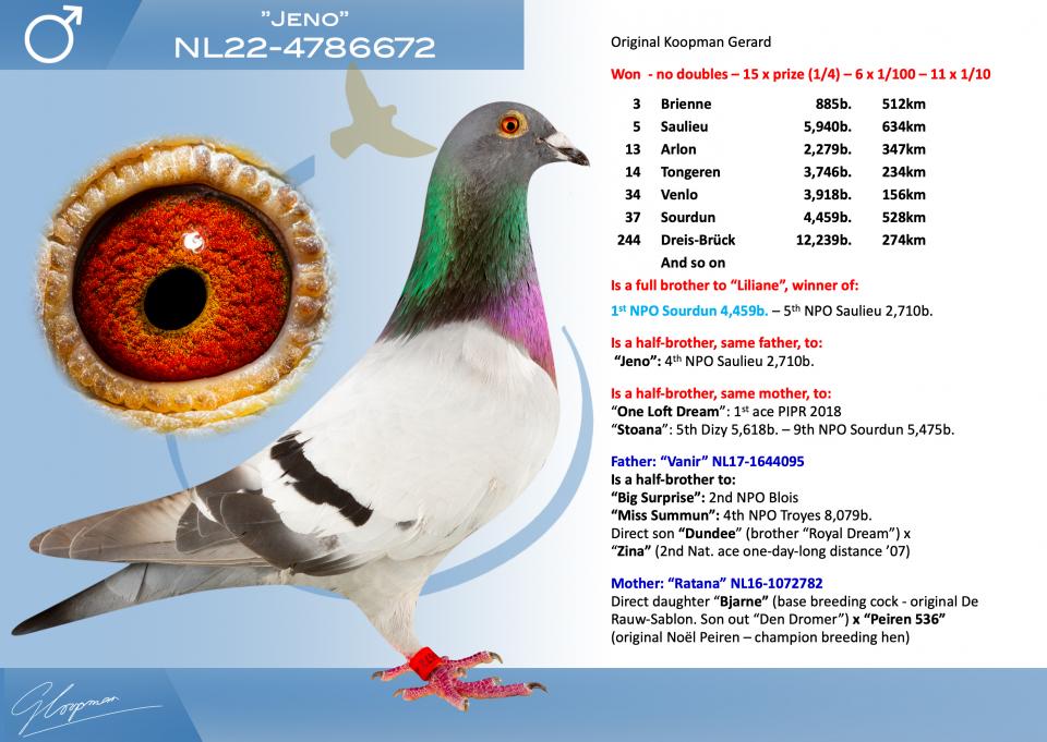 (base breeding cock - original De Rauw-Sablon. Son out “Den Dromer”) x “Peiren 536” (original Noël Peiren – champion breeding hen)