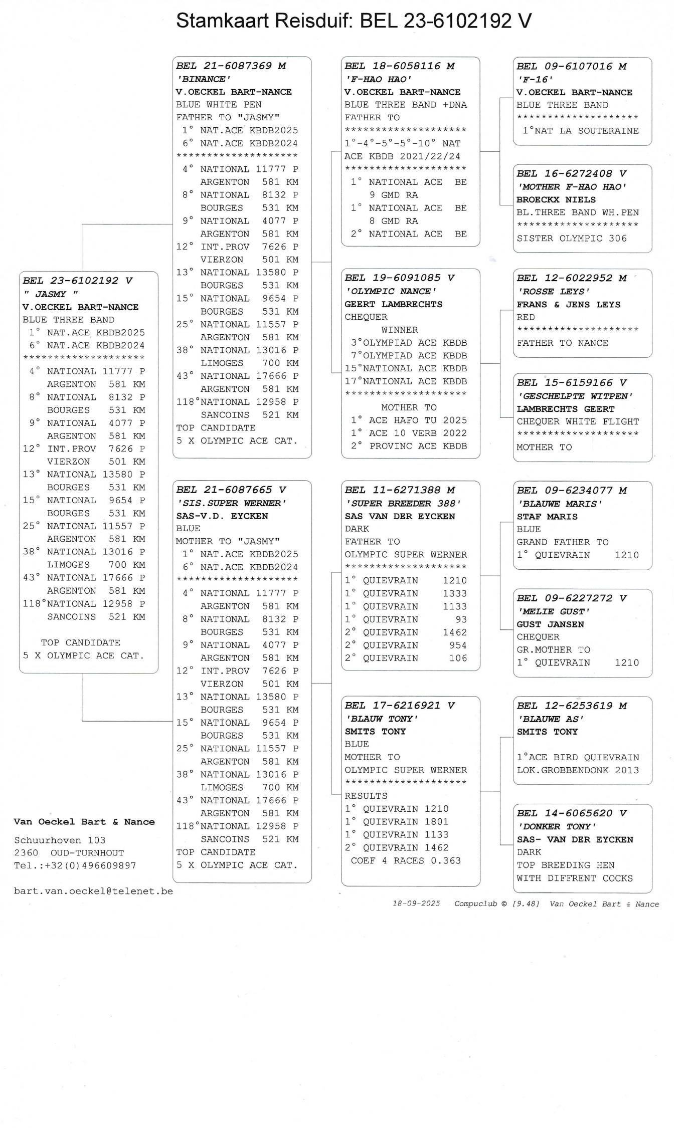 "B25-6049752" is een half-broer van 1e Nationaal Tulle (685km) - snelste van 10.717d.