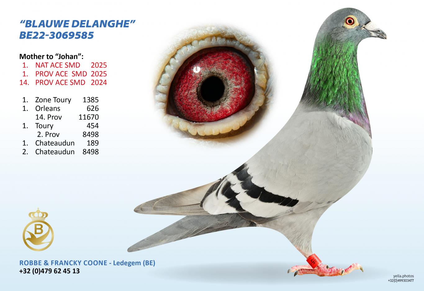 En natuurlijk kwamen de topuitslagen van nationale KBDB asduif “Olympic Ad Johan” ter sprake. Francky vertelt: “Als jonge duif won hij goed zijn prijzen en speelde geen opvallende rol. Als jaarling toonde hij wel zijn klasse en op het einde van het seizoen werd hij als 14e Provinciale asduif KBDB gekroond. Afgelopen seizoen – 2025 – liet hij vanaf de eerste vlucht zien dat het hij ervoor ging en ging iedere week als 1e getekende de mand in.