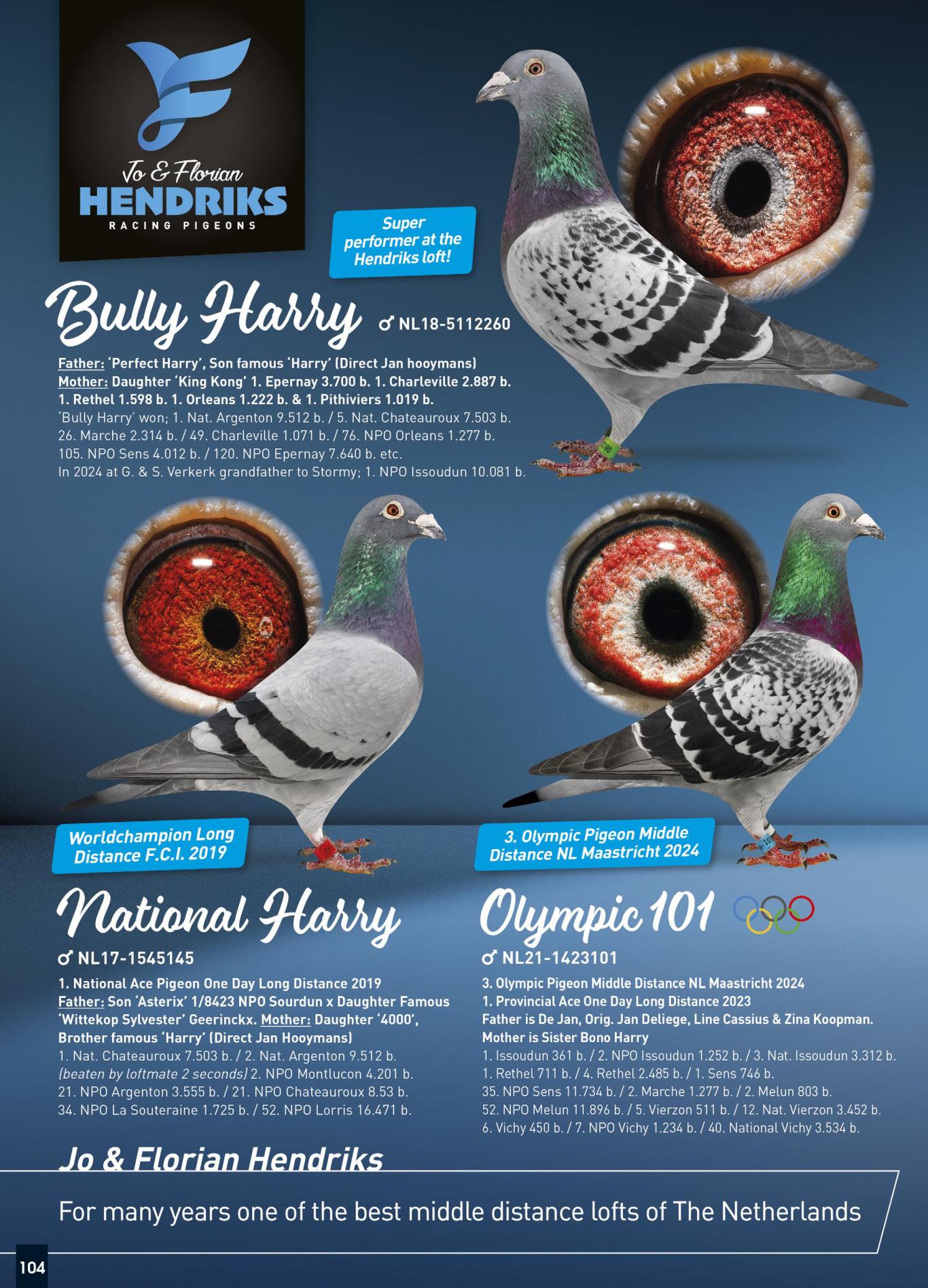 Ook de referenties met Hendriks-duiven elders zijn gewoonweg fantastisch. In Limburg is er haast geen winnaar waar geen Hendriks-soort in zit. Enkele namen (zowel uit België als Nederland) welke super succesvol met de Hendriks duiven zijn, zijn o.a.:
