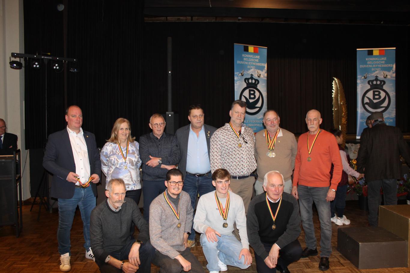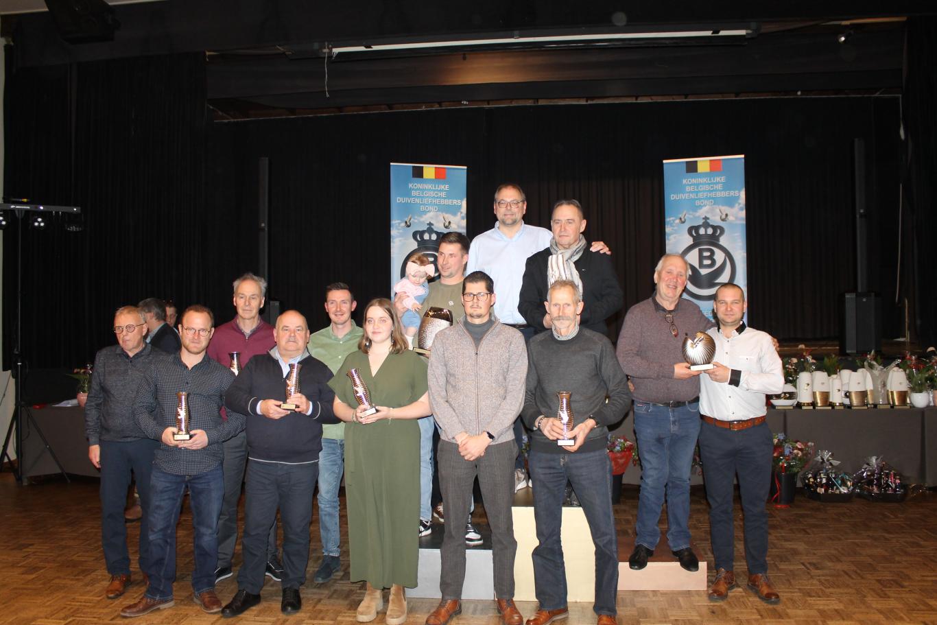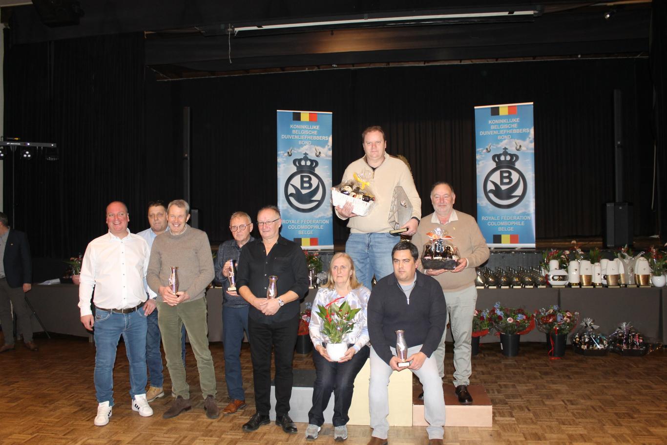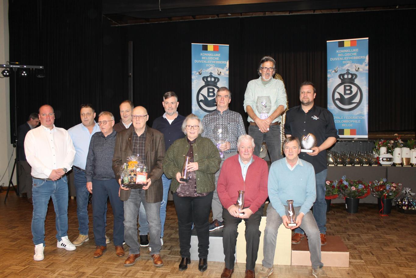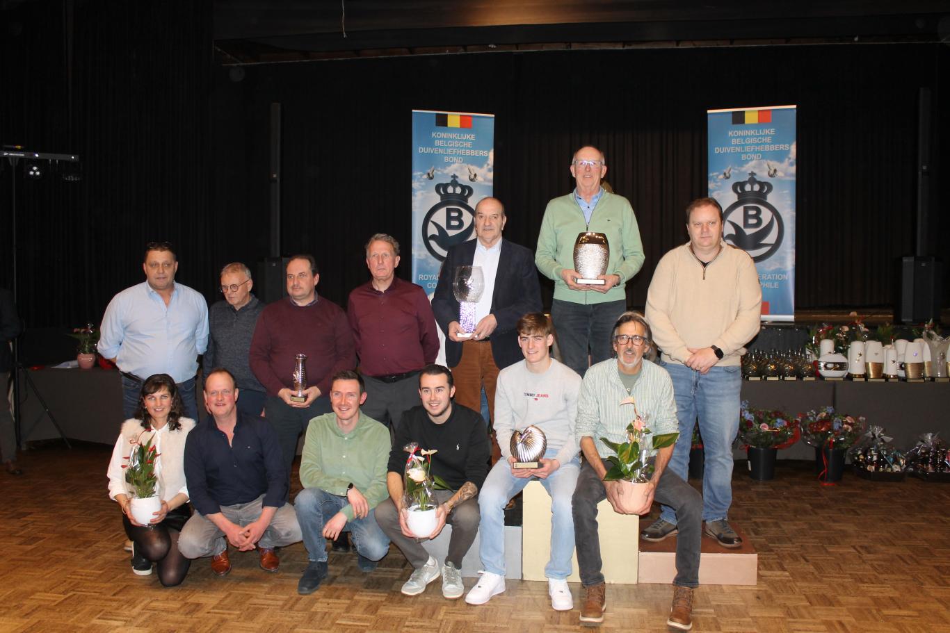 De uitreiking van de talrijke medailles, trofeeën, bloemen enz…verliep in een vlot tempo tussen de gerechten door.