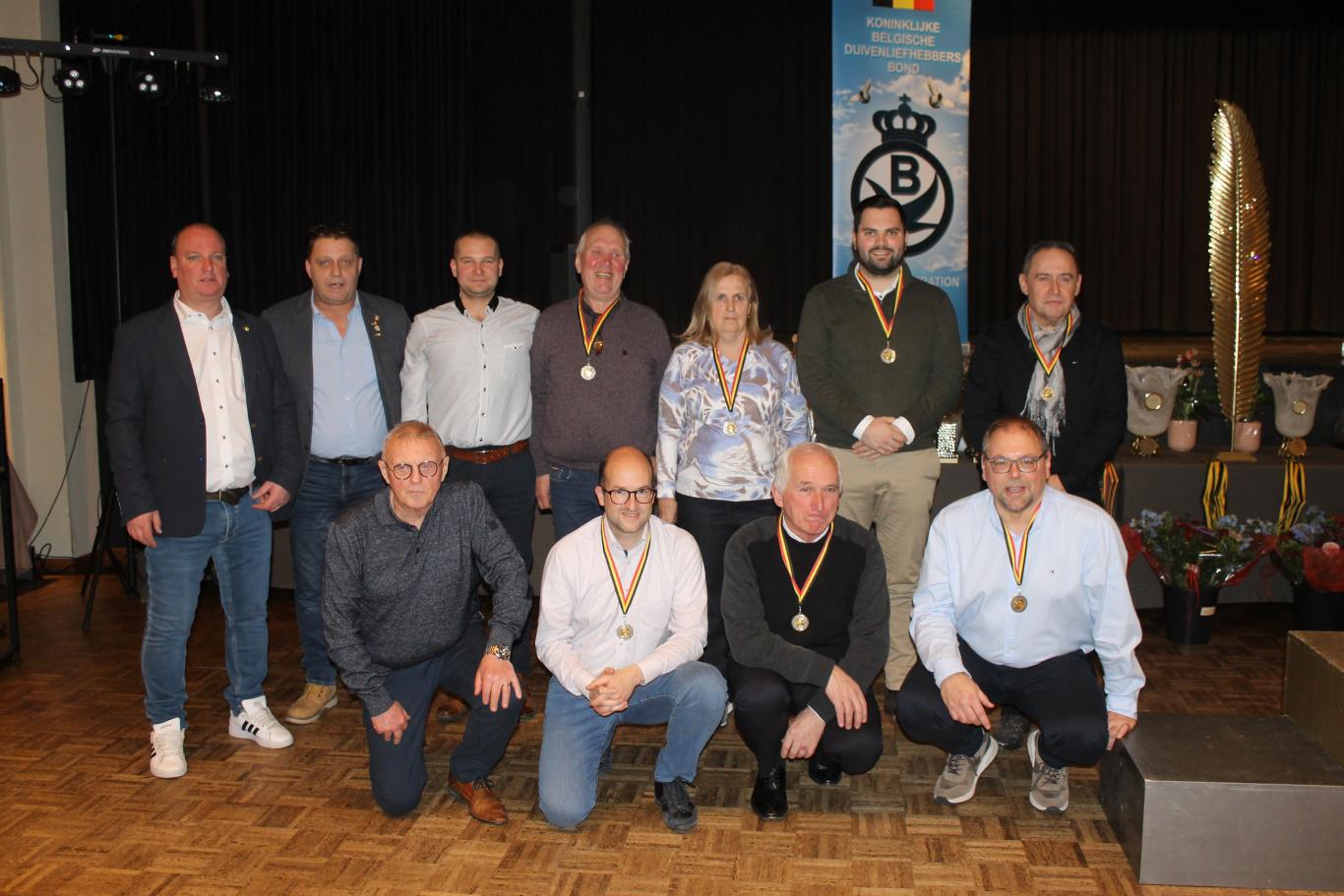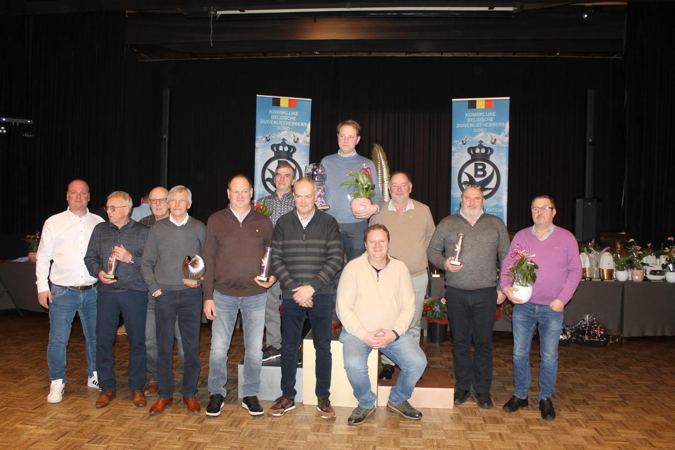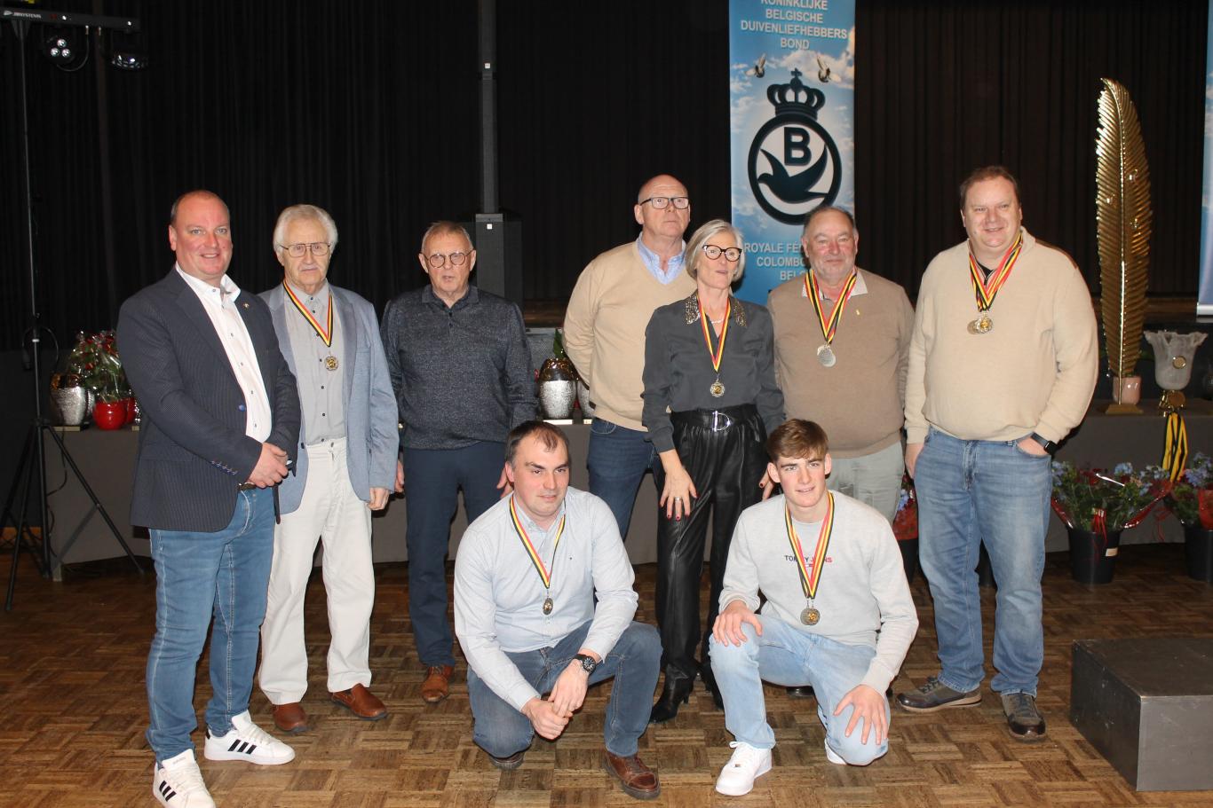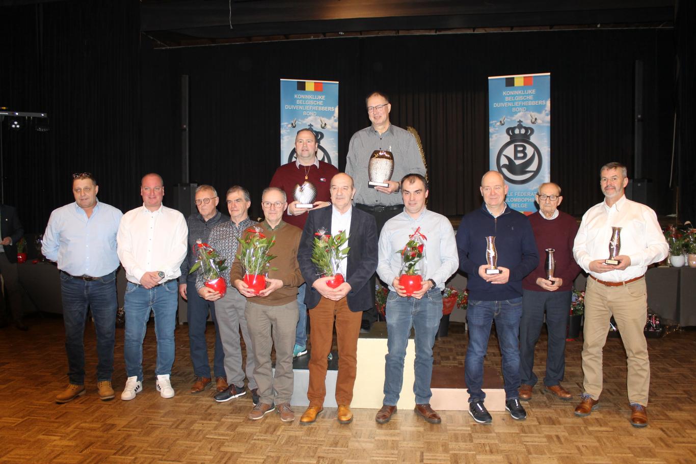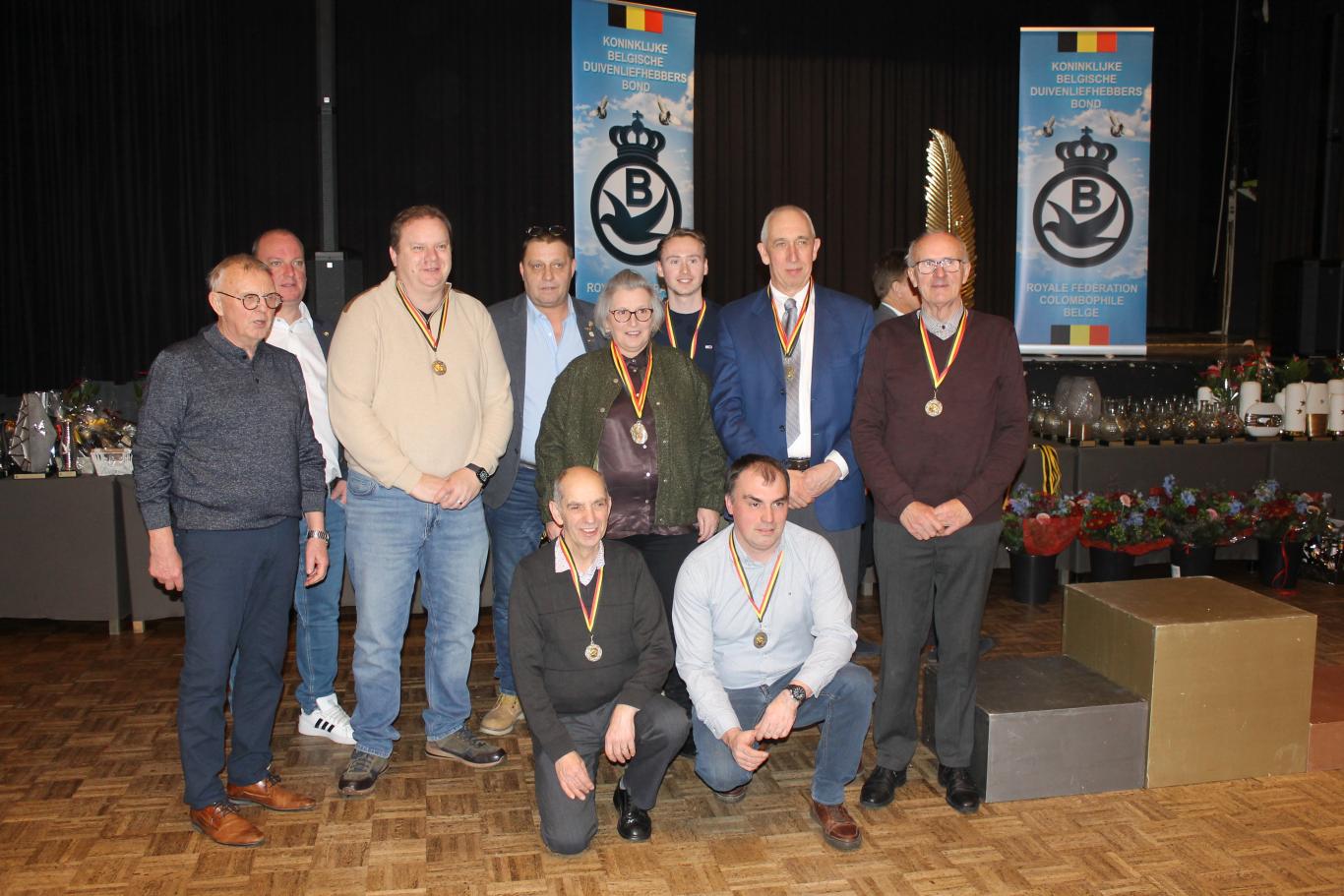 De uitreiking van de talrijke medailles, trofeeën, bloemen enz…verliep in een vlot tempo tussen de gerechten door.