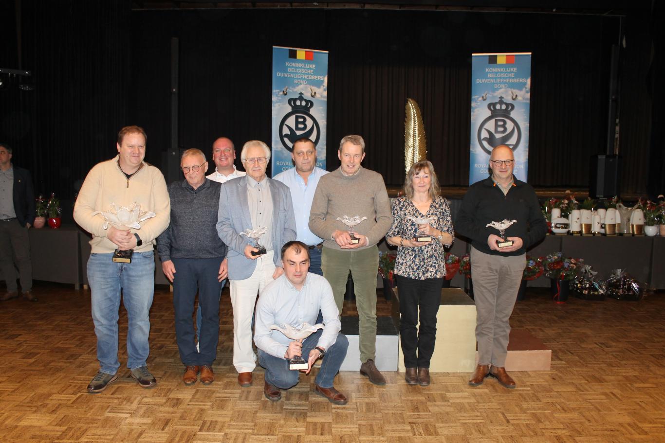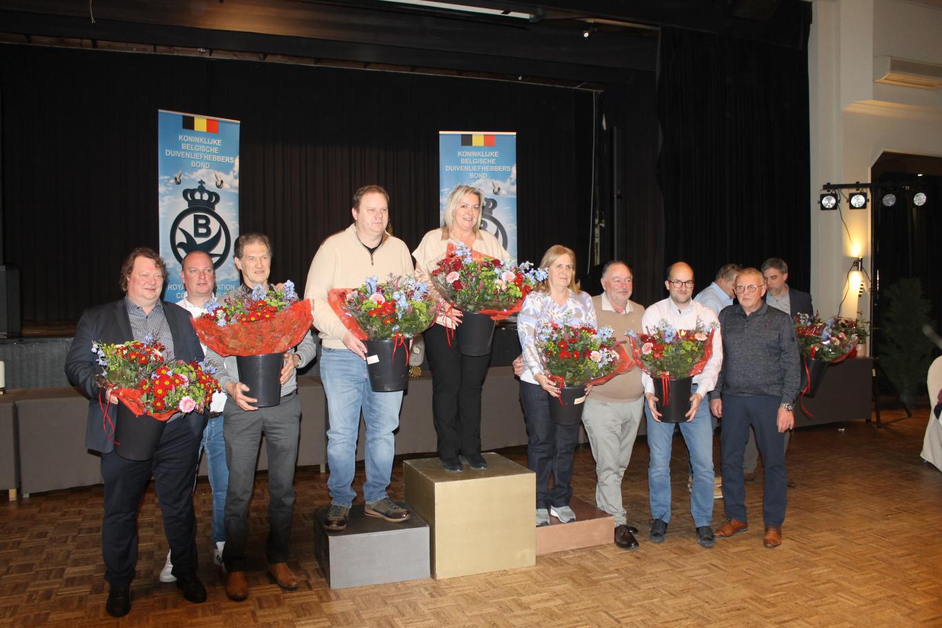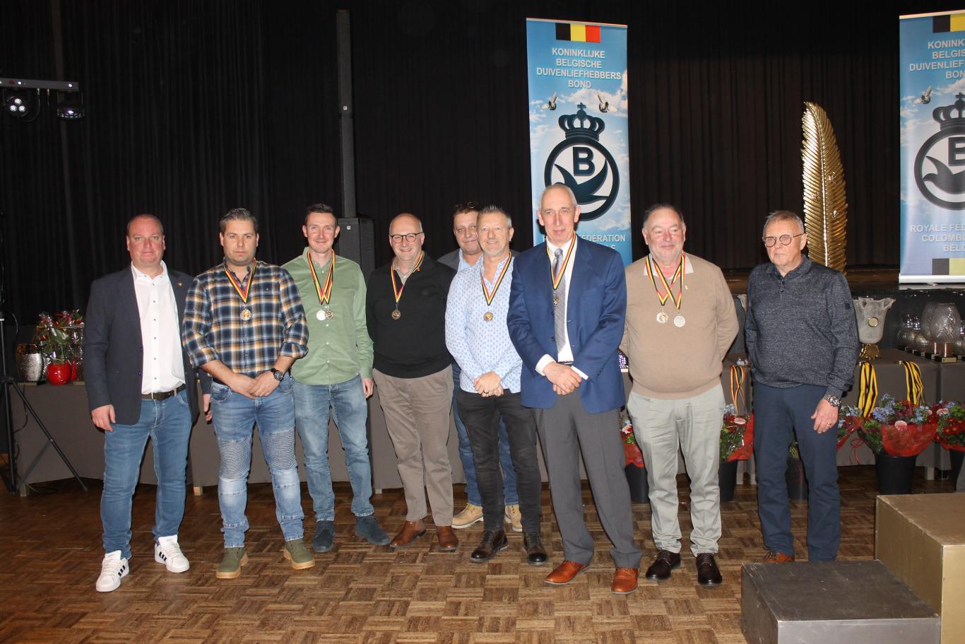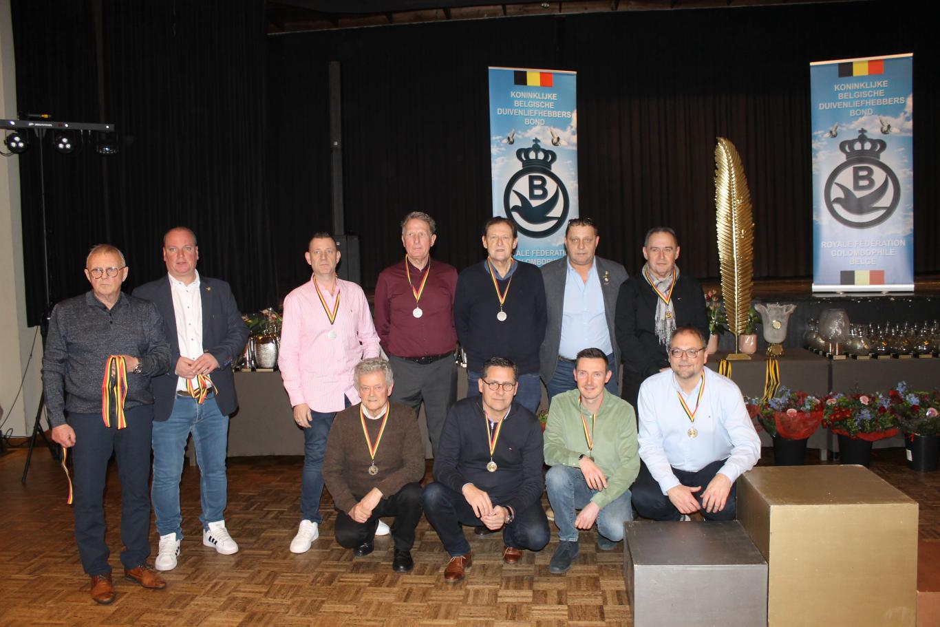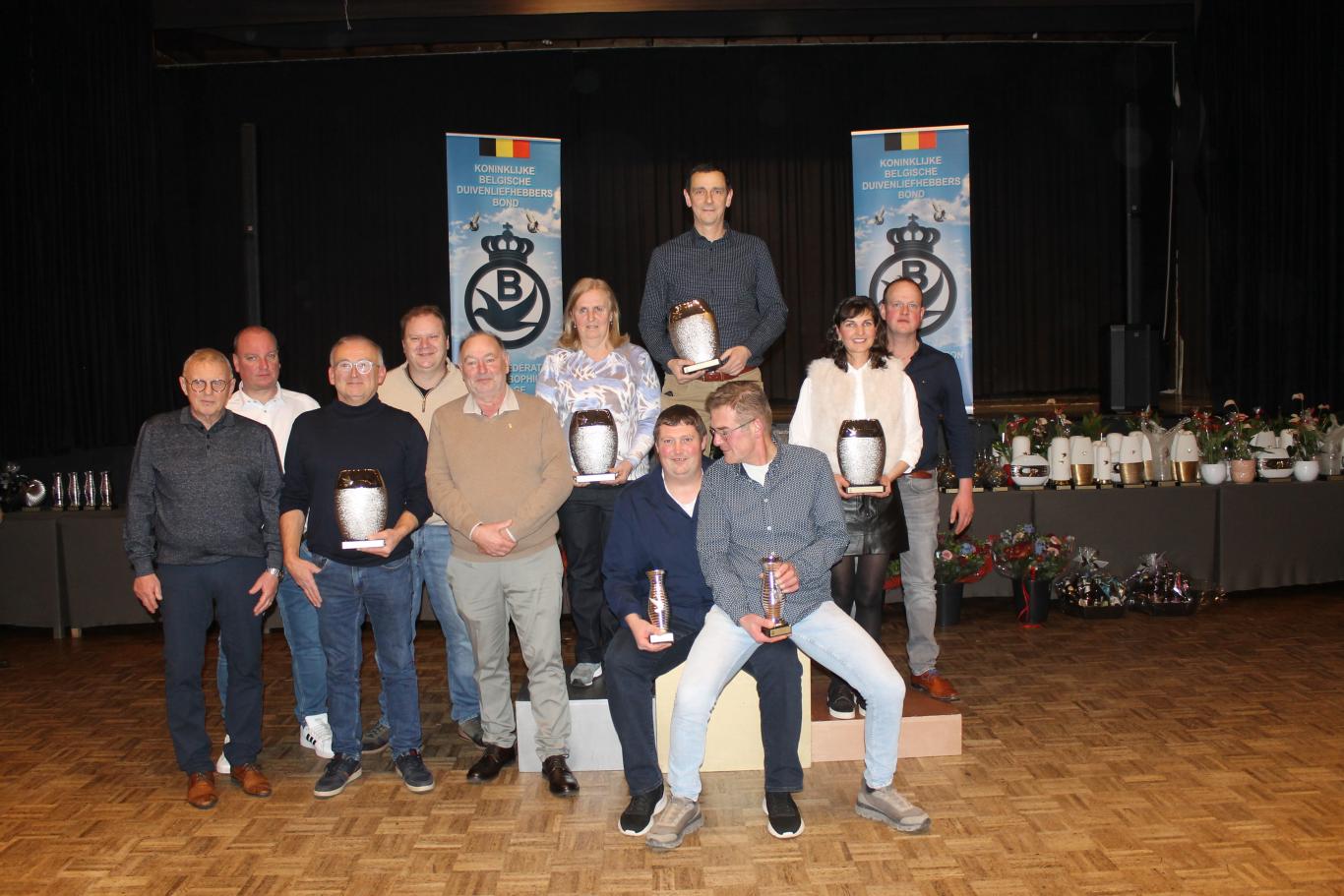 De uitreiking van de talrijke medailles, trofeeën, bloemen enz…verliep in een vlot tempo tussen de gerechten door.